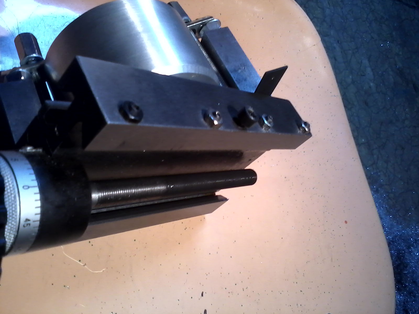 U tohoto soustruhu je nonius na konci hlavních saní . Takže je přímo spojen s vodícím šroubem . Pokud s ním točím ve směru ručiček,tak to dělá ty nepříjemné pohyby. Co se týká ložisek vřetrene,tak ty jsou no name. Výrobce do převodovky nasáčkoval i elektroniku,takže se netěším,až to jednou budu muset rozebírat. Rozšrouboval jsem malé saně supportu,a tam matice na utažení a vymezení vůle není. Na šroubu je jemný závit.