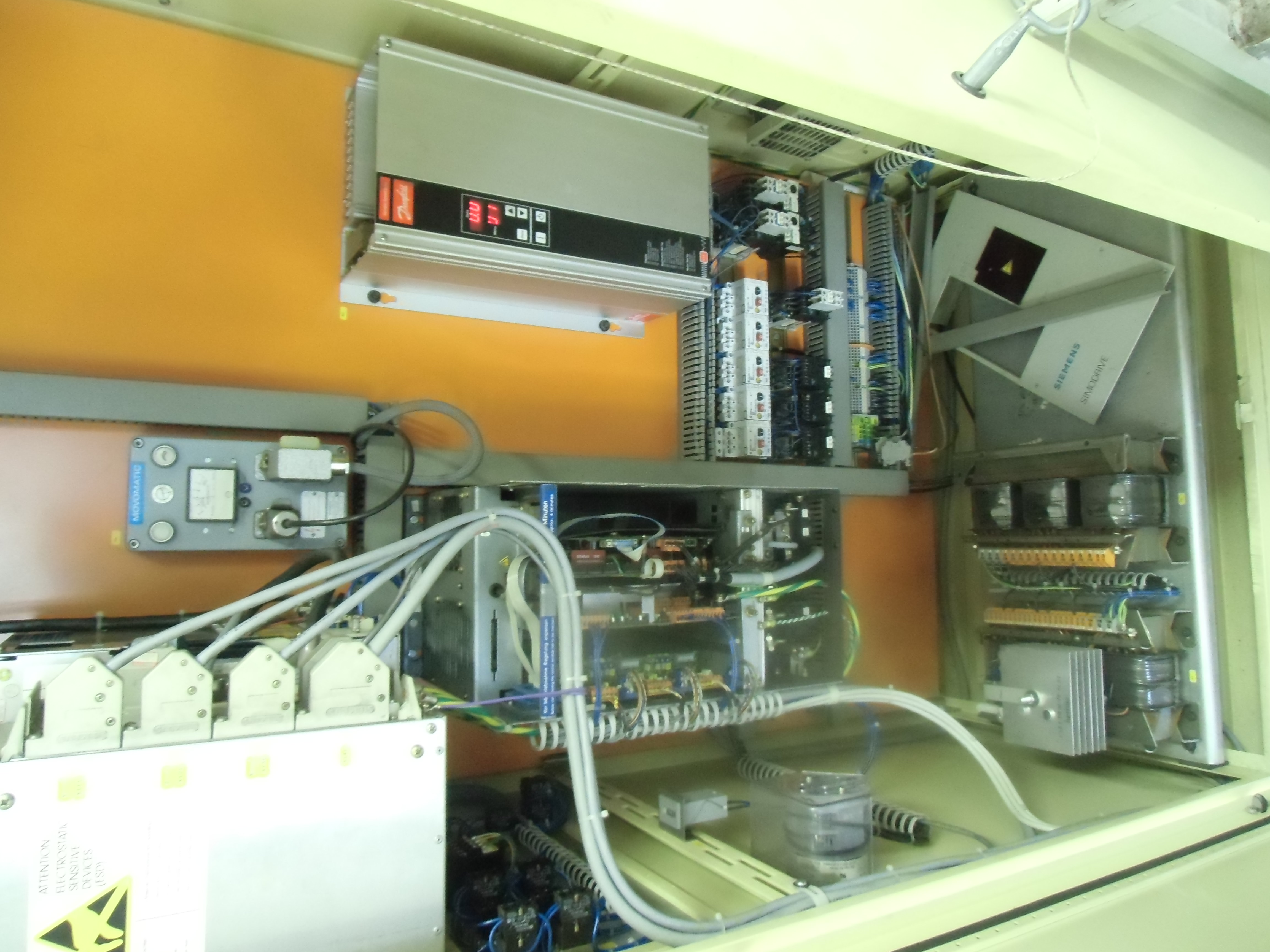 Tak ty fotky...Ono to není kaput,dá se říct že to běhá. Porucha se dělí na dvě větve.Jednak je tam asi opravdu závada protože měnič pouští při jakémkoli nastavení otáček do vřeten pouze 1 hz a taky blbne systém hlídání tlaku chladiva což je samozřejmě všechno spojeno s řídícím systémem ktrej pak hlásí chyby.Na to přijdem a měnič k tomu máme ještě jeden.Druhá větev je samotnej sinumerik.Vypadá to že někdo uzamčel systém proti změnám takže se dá spustit,najet referák,jezdit ručně posuvy atd.Nedá se přepsat referák,napsat program ( nabízí pouze podprogram )atd.Je fakt že i s manuálem to prostě nedá pro laika zvládnout.Ale už jsme našli pána co tohle spravuje.Jako systém je to fakt vychytaný,je vidět že to nedovolí udělat kokotinu na drahým obrobku jenže to právě jako začátečník nepotřebuju.Jestli jsou ve fotkách i jiný věci tak ty se řídí analogově