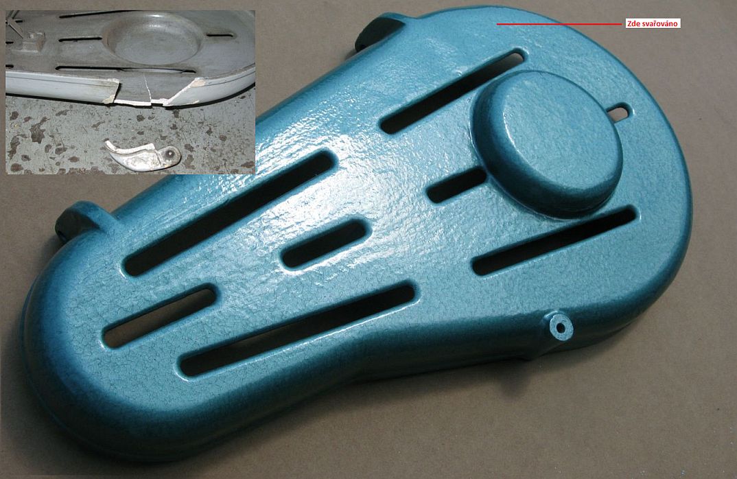 Zde je foto po opravě - svaření držáku motoru a krytu řemenice.