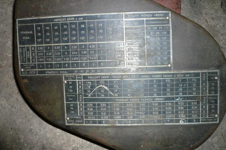 dalšího, rád bych to od vás získal. Na mém soustruhu tabulky jsou, ale jedna je dost poškozená, zkusím vám je zítra nafotit.