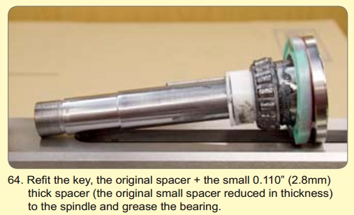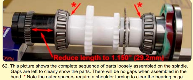 For the spindle tapered roller bearings have made seals from automotive jointing material. Seals were made after calculating dimensions of the bearing housings on the headstock and bearing dimensions. The jointing material used is 0.7mm thick, and each seal was made in three parts in order to make clearance for the bearing. As new bearings are 1.25mm thicker than the original ball bearings, two 0.7mm parts of each seal are actually spacers.