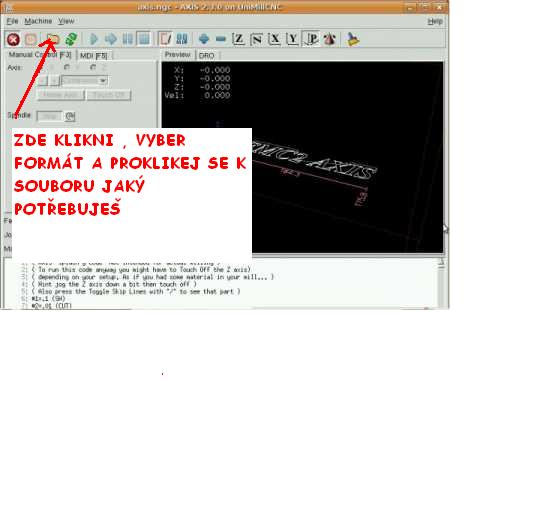 Nejak nechapu co myslis tim "dostat program z editoru". Prece kdyz v tom ovladacim okne das otevrit pozadovany soubor, tak Ti tam vleze sam. Pak jen pustis masinku vypnutim totalstopu, nahoumujes vsechny osy a pustis obrabeni.