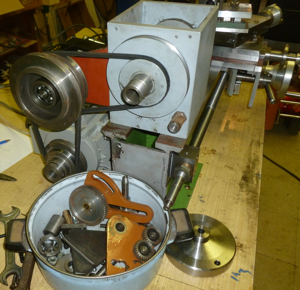 Mne docela zaujaly ty výměnné závitové šrouby - to je jen nápad, nebo už jsi promýšlel i možnou konstrukci? Výměnná závitová kola (pokud nejsou v nějaké převodovce) vyžadují poměrně jednoduché prvky: kola, nasazená na letmo uložené čepy a zařízení, kterým se přizpůsobí různé průměry kol, ze kterých se sestavuje soukolí pro daný závit - lyra. Klasický závitový (vodící) šroub má, v nejjednodušším případě, na jednom konci poslední kolo v soukolí (v tvém případě řemenici), pak ložisko (radiální i axiální), pak prochází podélným suportem, ve kterém je dělená matka, která ho k němu připojuje a odpojuje. Pak přijde ložisko na konci lože.