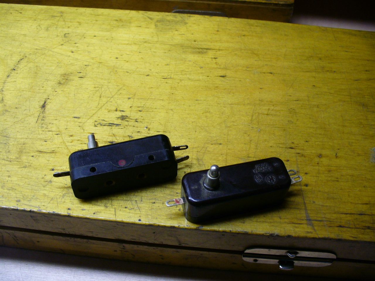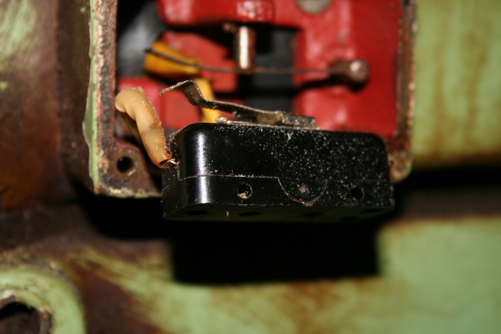 Originál neměl přepínací kontak, ale pouze rozpínací, a šroubovaný je za spodní část do té litinové krabičky.