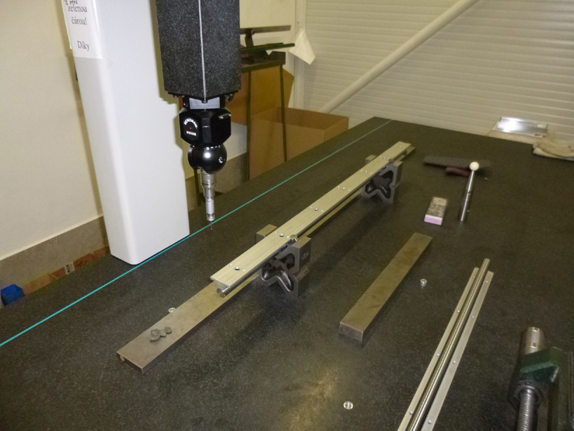 Tyče jdou poměrně malou silou přitlačit k rovné granitové desce měřícího stroje, tak aby byly cca rovné. Původně jsem ale uvažoval tak, že rovné budou tyče a desku to jenom vyztuží.