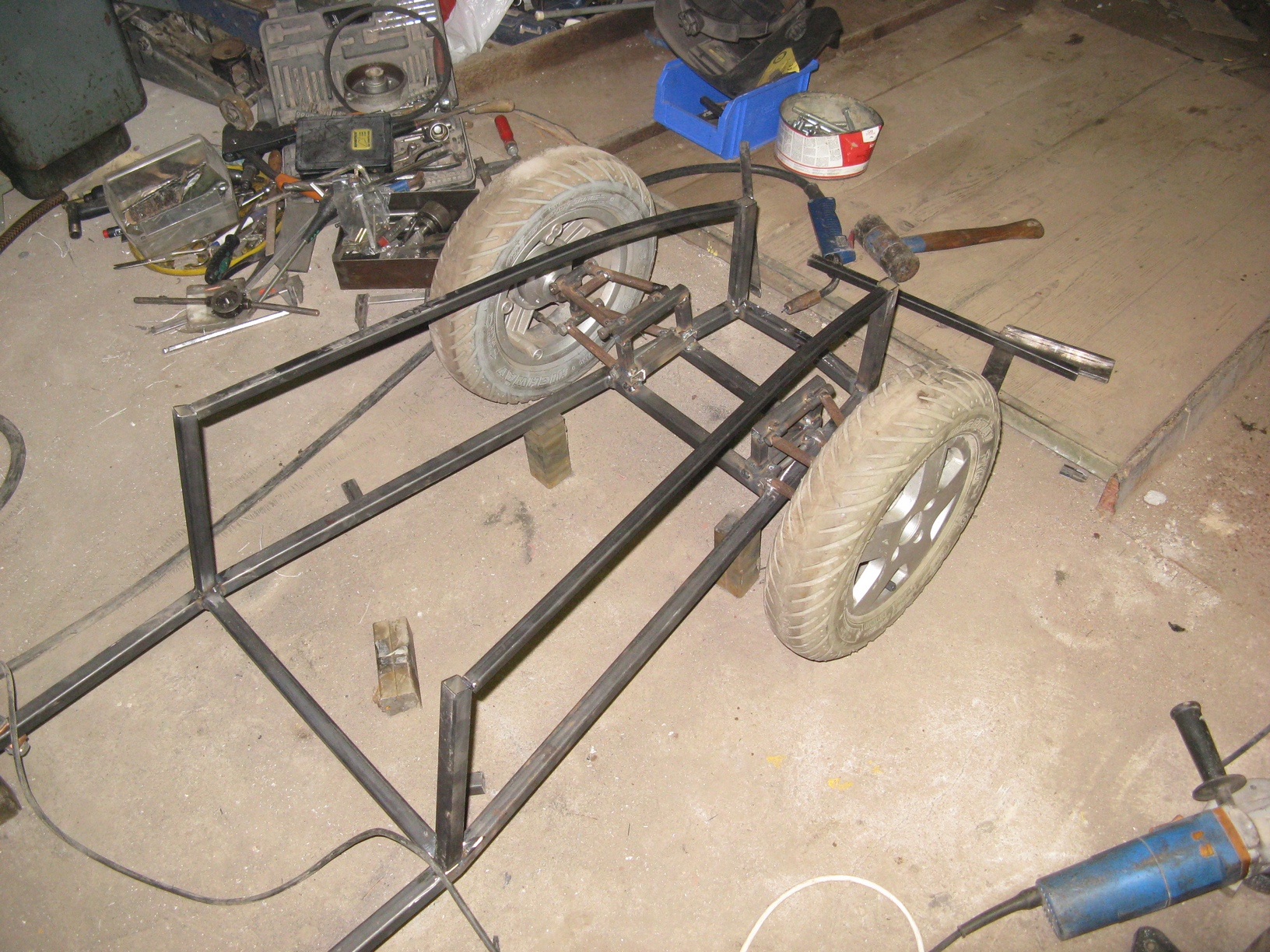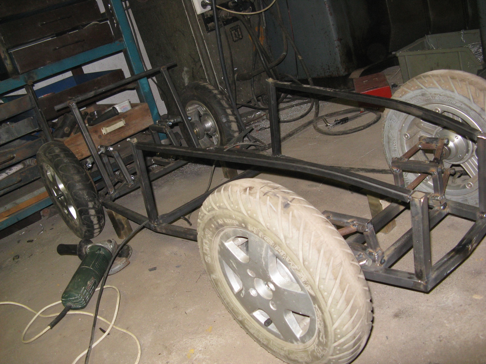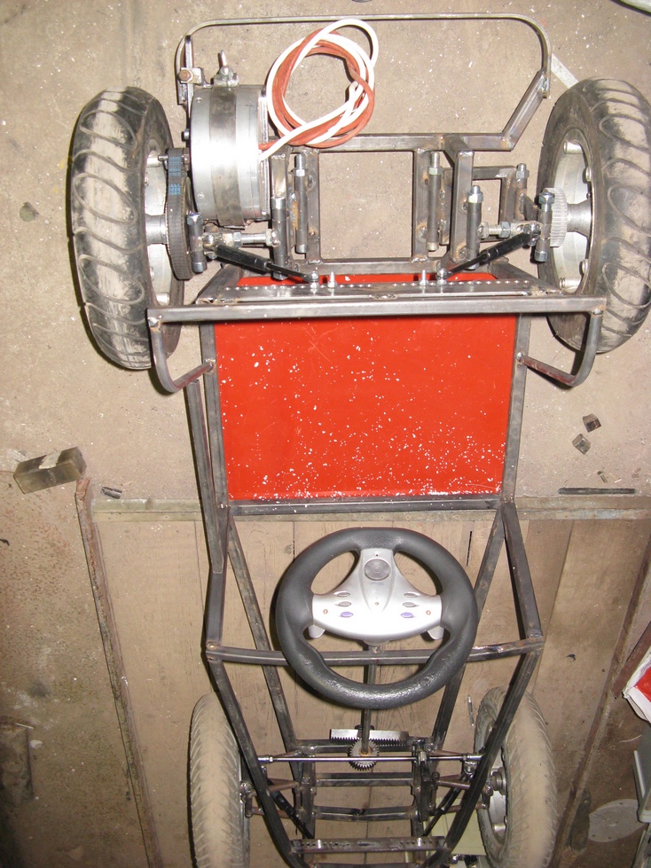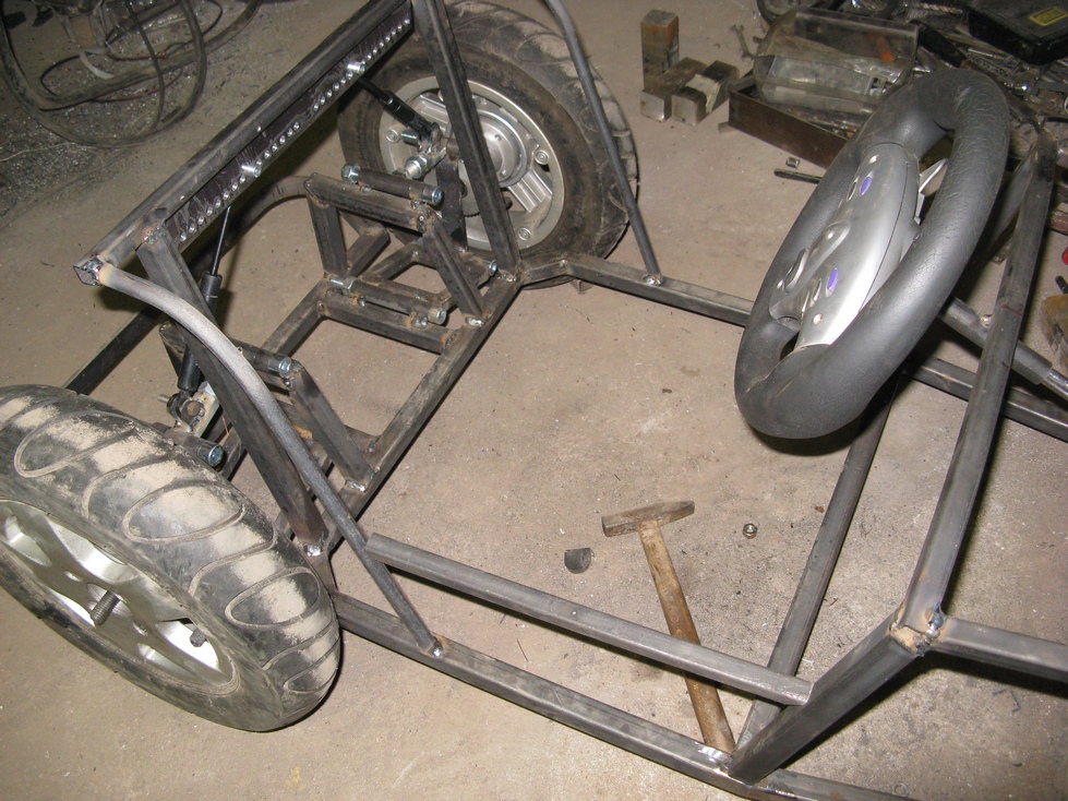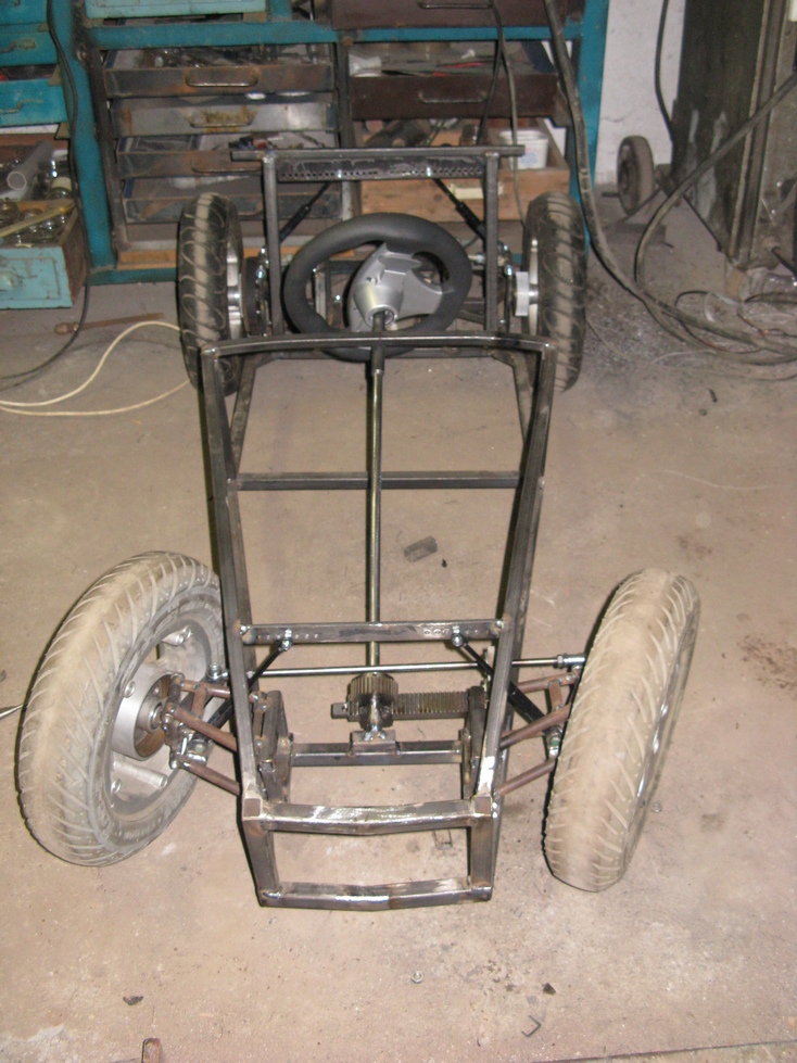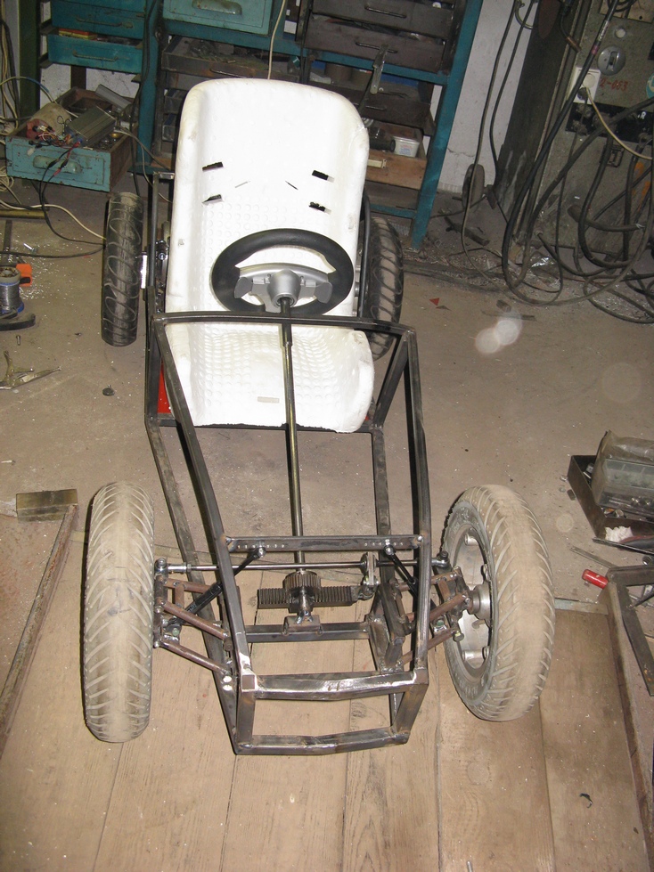 [Tak jsem se pustil do stavby vozítka pro naši dcerku , je to replika Lotus Seven v měřítku 1:2,55 což vyšlo z velikosti kol které jsem již dříve sehnal , pohon bude 750W BLDC motor , řízení hřebenové , odpružení přední+ zadní plynové vzpěry s možností nastavení výšky .
