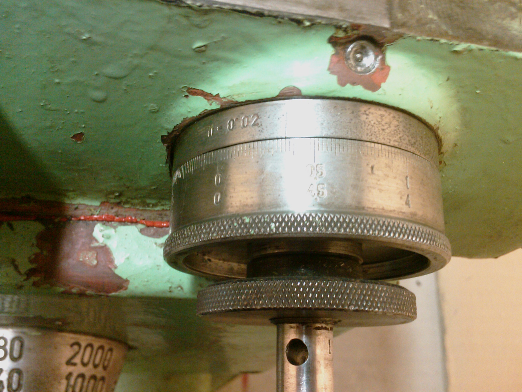 Pokud je hodně zkorodovanej, tak přetočit, znova narádlovat a vygravírovat. Tohle jsem nedávno dělal na příčném bubínku z Volmana. Tam se neodečítal průměr, ale přísuv suportu a nejenom, že jsem ty dílky těžko luštil, ale nemohl jsem si zvyknout na to přepočítávání. Teď je to "slušně vychovanej soustruh". Co zaberu, to tam je.