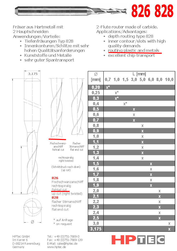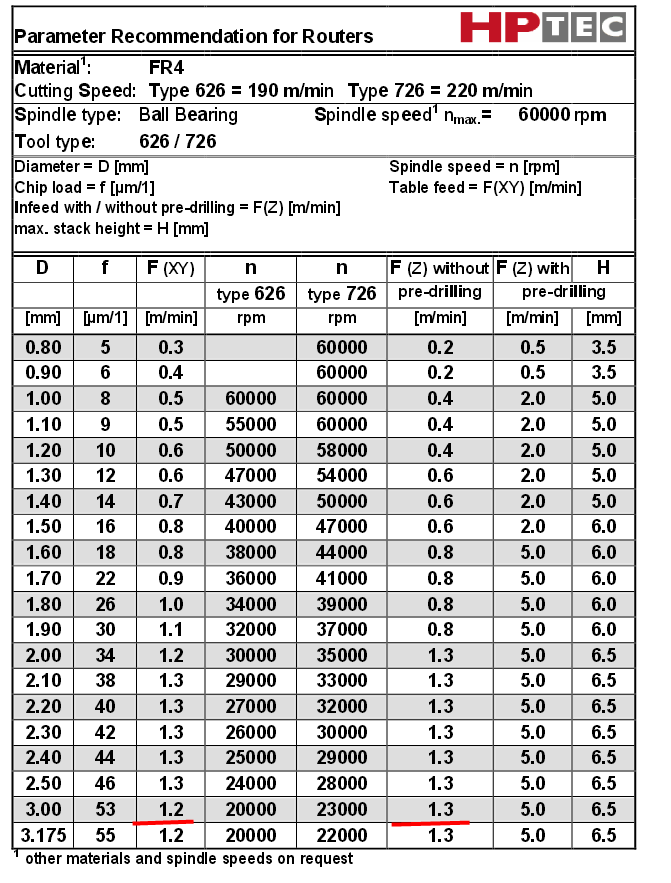 Ty 826 ferzy jsou urceny i pro plast,hliník viz příloha. Jen k nim výrobce nedává informace k řezání do hliníku, kolmo dolů. Uvádí parametry jen pro podobnou férzu do FR4. Proto se ptám.Pokud mi doporučíte jiného výrobce či dokonce konkrétní frézu, tak budu rád. Nebo i tvar frézy.robokop píše:1.2m/sec co to je za parametr