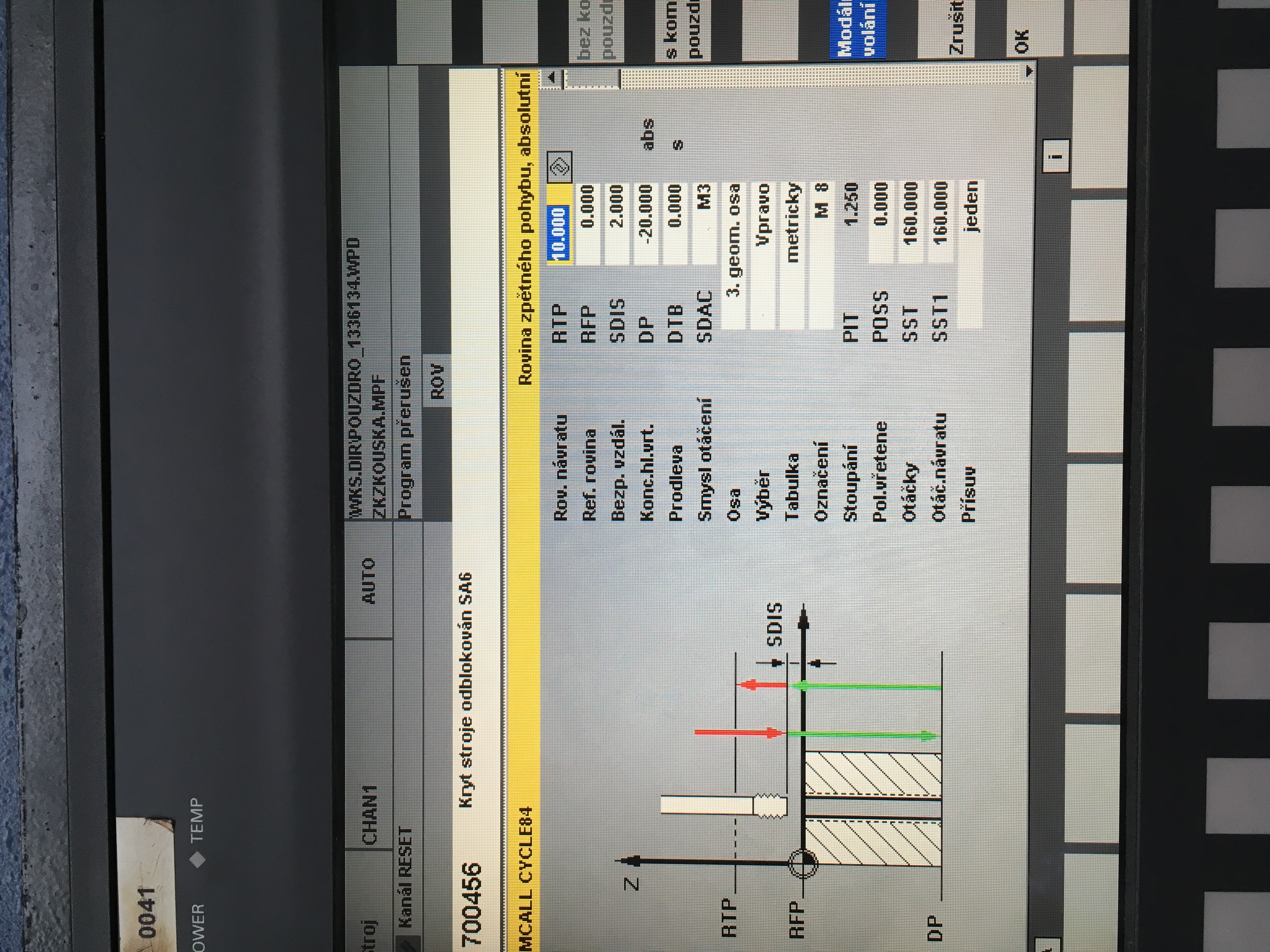 Pokousim se na soustruhu v cyklu 84 zavitovat a stroj mi vubec nerozumi.