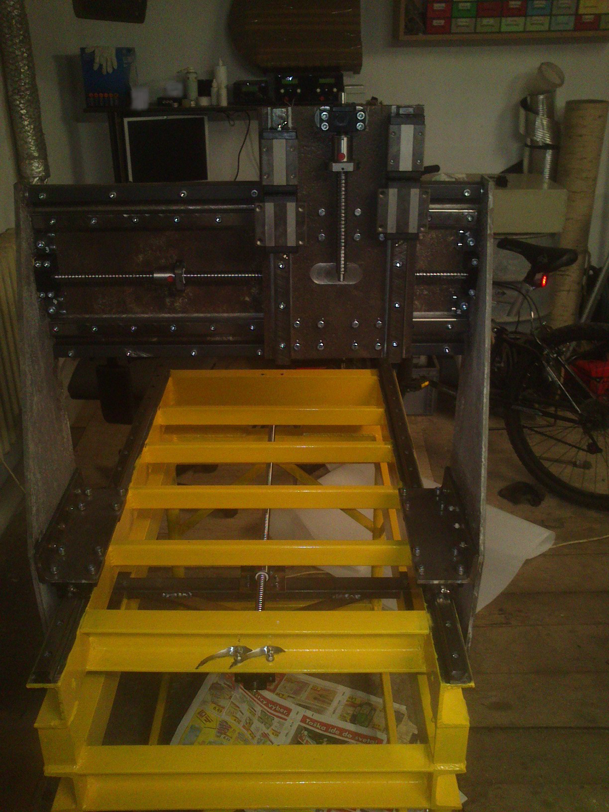 dost som sa inspiroval na frezke od Zamiho, ale nakolko cela konstrukcia je zo zelezneho odpadu ktory som mal doma niektore veci by sa dali rozhodne urobit lepsie :) s tym ako to nakoniec cele funguje som celkom spokojny az na portal ktory sa pri viac ako 30mm/s cely roztrasie.budem dorabat este trojuholnikove vyztuze medzi bocnicami portalu a Xovou platnou.