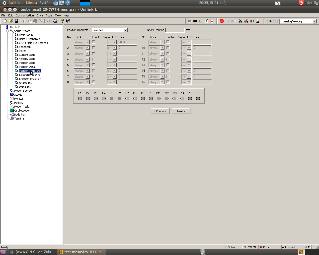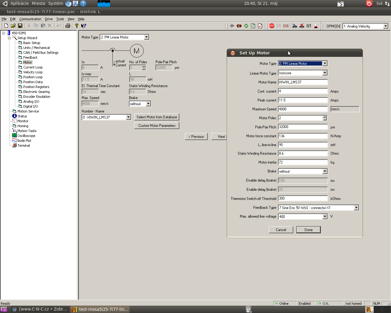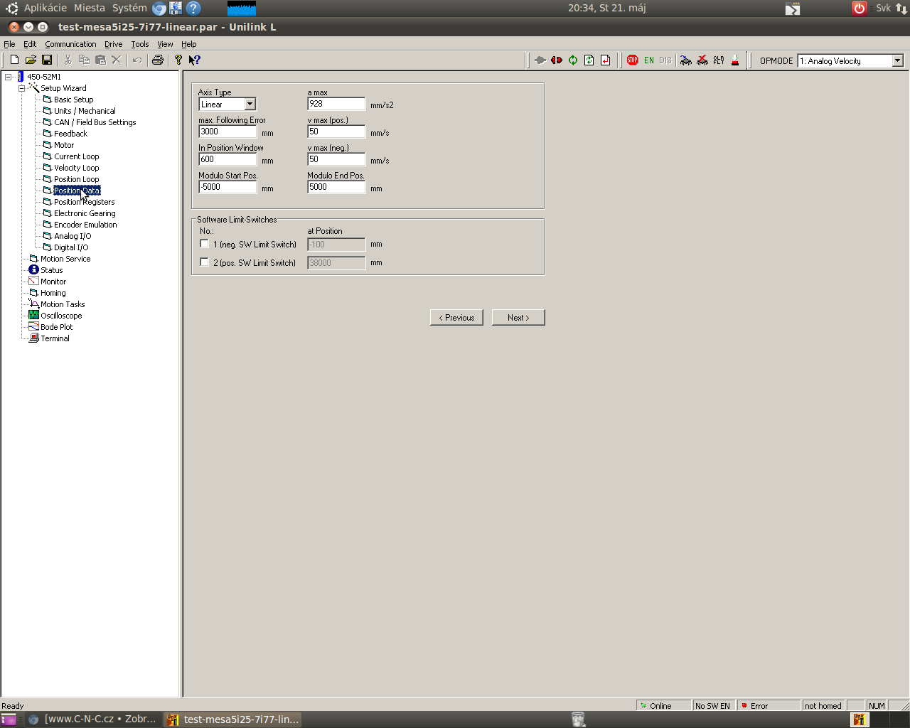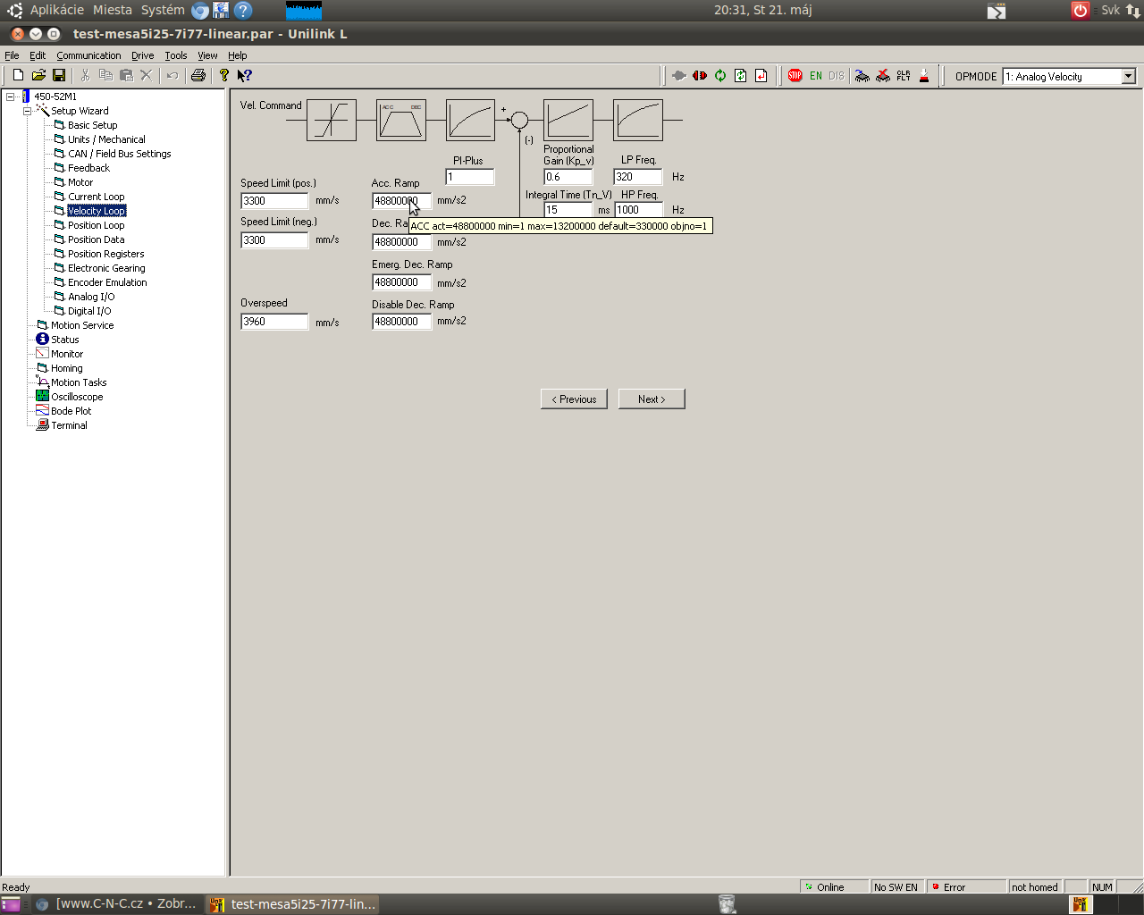 Rampy som nechal nastavene na 4880000 m/s2 pretoze default je tu 330000 m/s2 a pri Unilinku sa to netvarilo nestastne :oops: nastavim tam pri dalsich testoch 3000