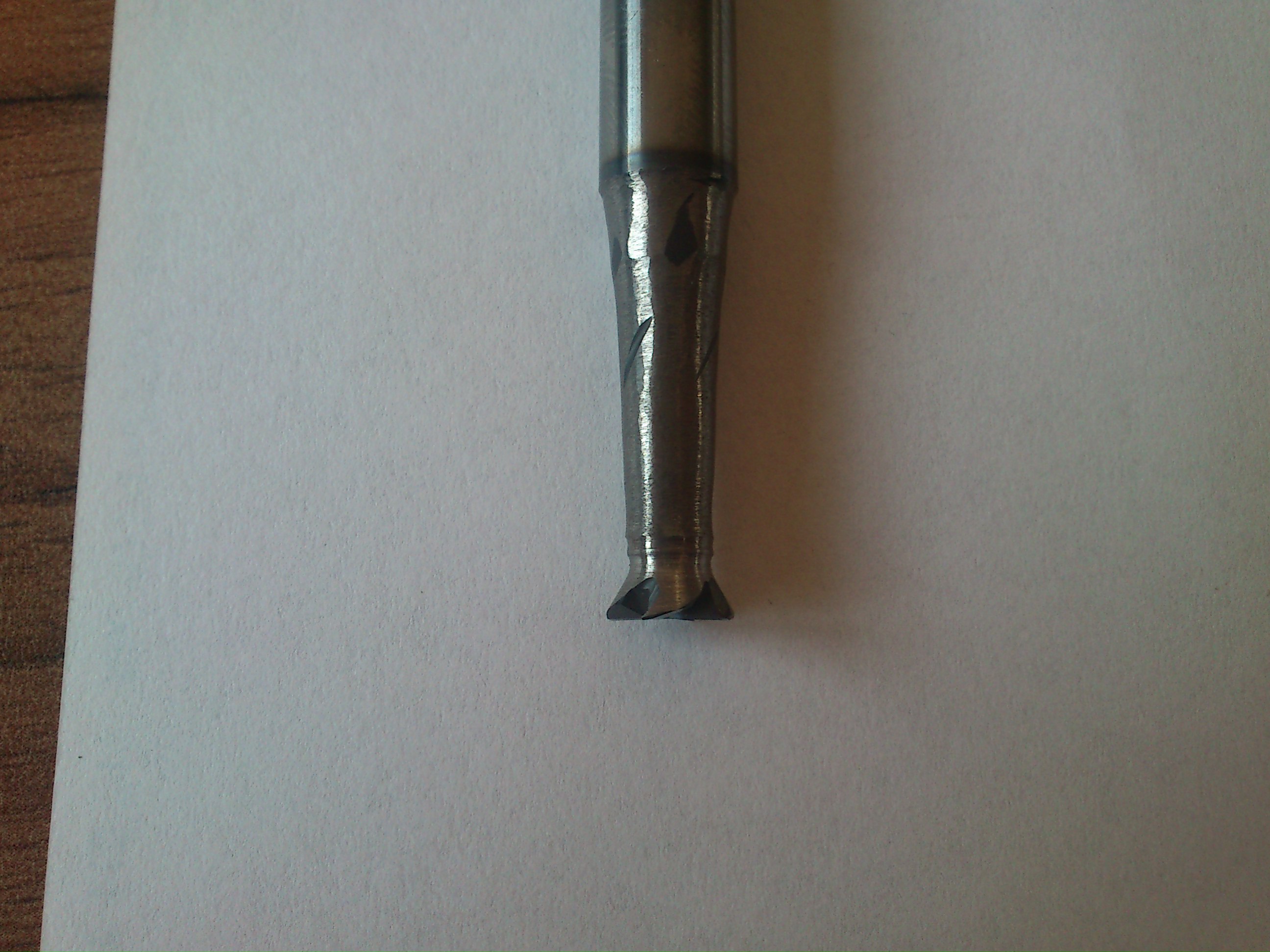 2. nabrousit úhlovou frézu, která má břity ve šroubovici tak, aby jsi zajistil přesný úhel toho nástroje v závislosti na sklonu šroubovice, kdy fazetka břitu musí být po celé délce břitu stejná, stejně tak zábřit, navíc ve tvrdokovu, je u takto malého průměru frézy nejvyšší dívčí