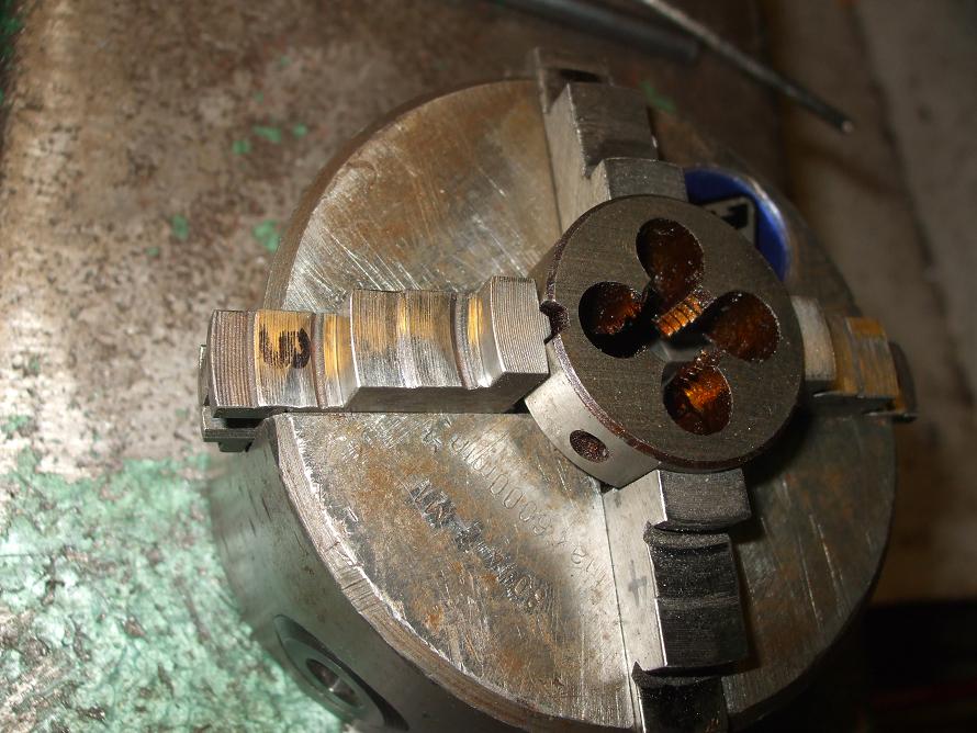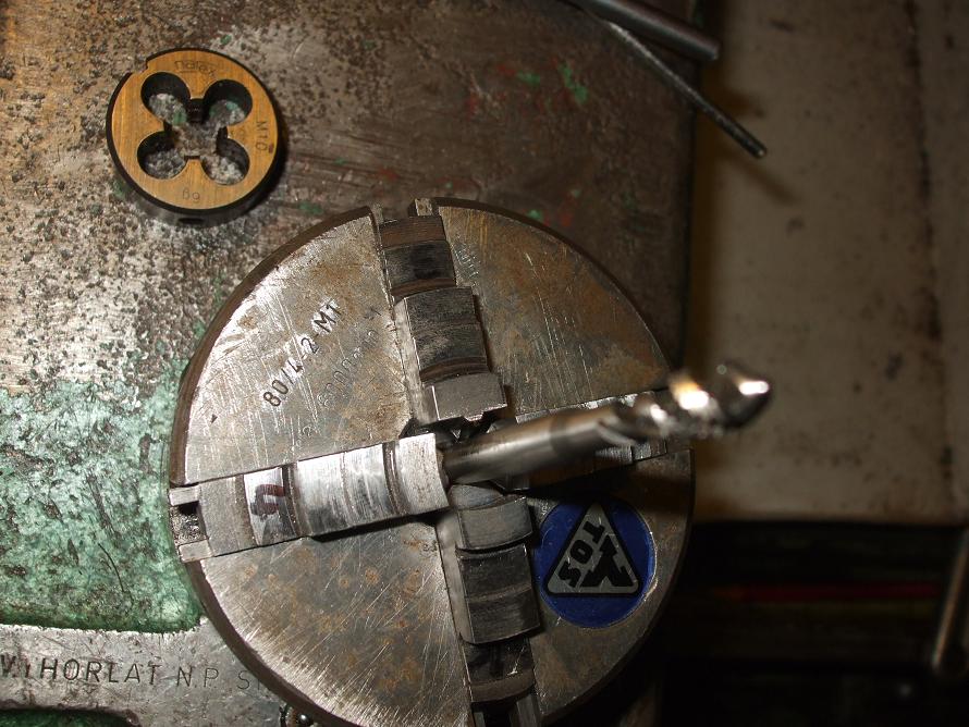 Tiež používam malú 4-čelusťovku, no čeluste sú vpredu upravené, a jedna je vysunutá a má zúbok na uchytenie očka. Vzadu sú rovnaké, tam upínam závitníky. Hlavičku mám uchytenú v upravenej závitoreznej hlave, aby sa nemusel posúvať koník, alebo pinola.