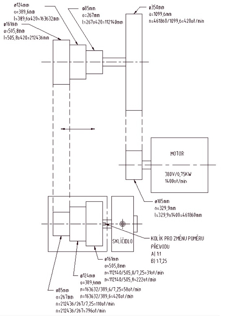 Motor časem tedy seženu. Mám doma kombinovaný dřevoobráběcí stroj UMDS 2A a tam je 1,5KW a 1410 ot/min.. Tak jsem si říkal, že bych stejný dal i do tohoto soustruhu.