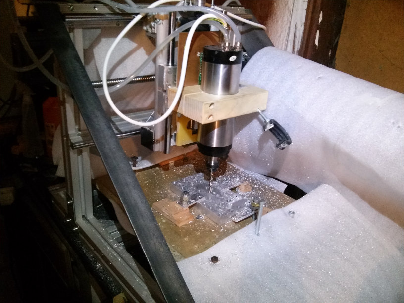 Zatím jsem frézoval sklotextit rychlostí 250mm/m, frézka 3,175 z ebaye, 20000ot/min a tenhle hliník 200mm/m, fréza 2 břitá z cnc shopu, přimazáváno lihem, 20000ot/min (to je asi zbytečně moc, že?). Pak ještě nějaké frézování otvorů do hliníkových krabiček.