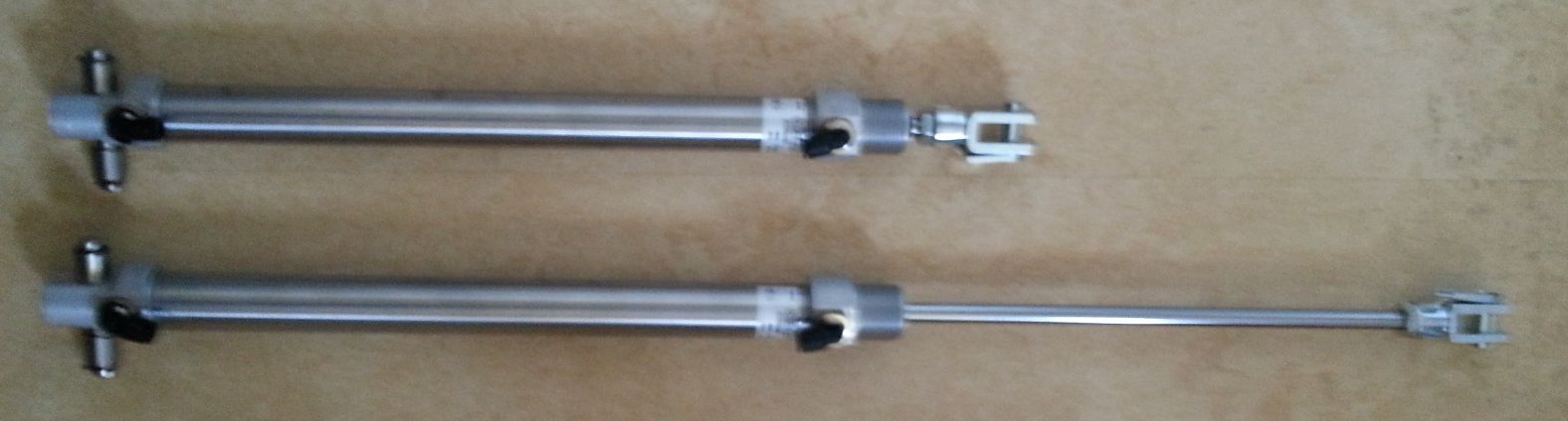 Delší válec označený 2729200 má průměr cca 22mm, vzdálenost os čepů při zasunutí je cca 335mm, při vysunutí cca 535mm. Cena 500Kč za kus + pošta. Preferuju odběr po párech.