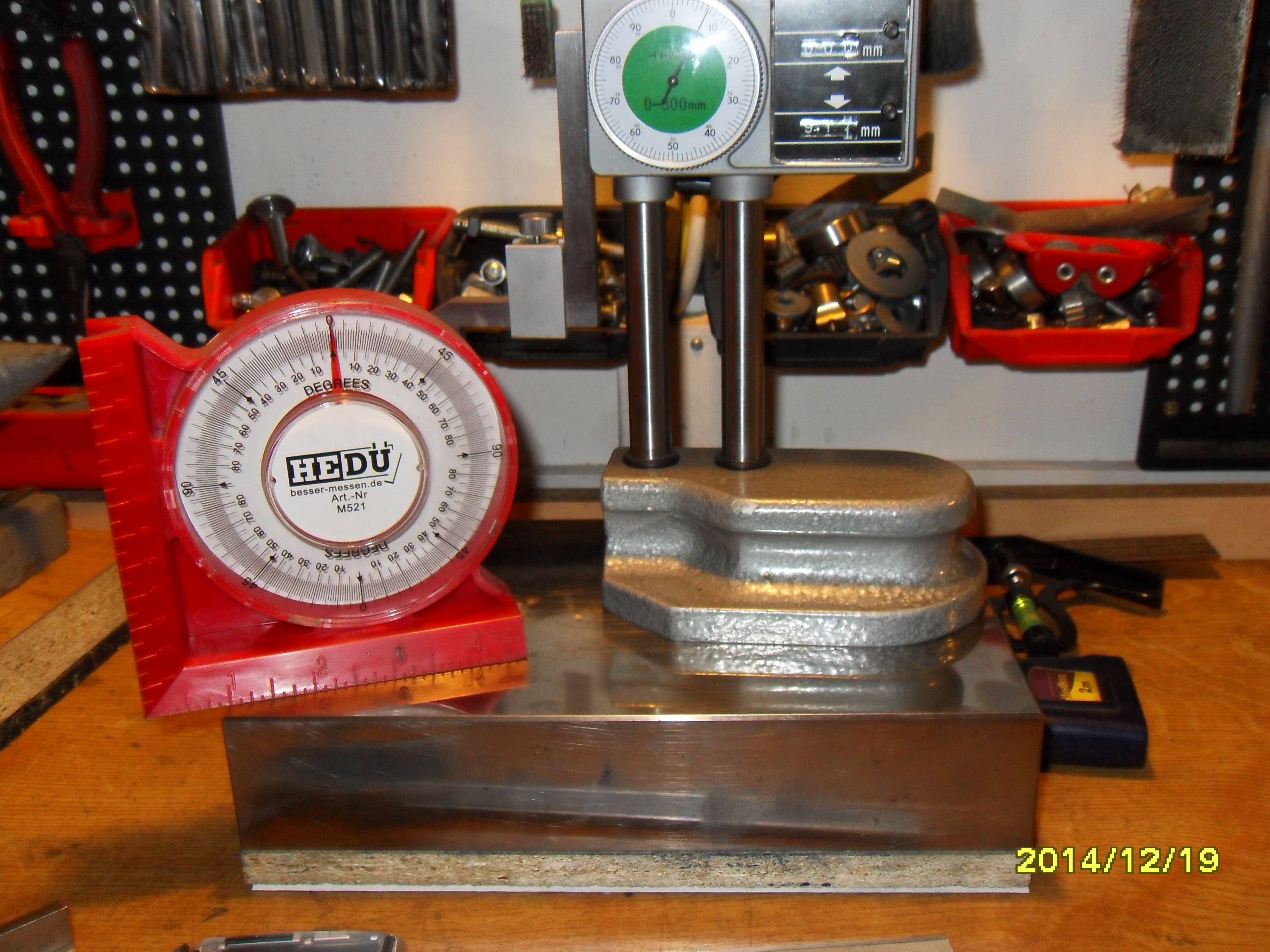 Čekal jsem, že se vyjádří Tumlík, ale asi neměl čas přečíst víc příspěvků, neboť dnes vložil tři čísla a šel ... Tak tedy jen krátce. Rybiny se samozřejmě zaškrabávají stejně jako jiné kluzné plochy. Základem všech dalších činností je dokonalé proměření a od toho se odvíjí další postup. Je-li nerovnost v řádu jednotek setin, tak můžeme uvažovat o zaškrabávání. Pokud je to víc, tak bych zvažoval strojní opracování a pak teprve zaškrabání. Tumlík si vytvořil pomocné pravítko s potřebnými úhly a tak mě inpiroval k pokusu vytvořit si něco podobného pro moje účely. Kus pěkné litiny, sklonoměr, přesný úhloměr, nožové pravítko, mikrometr a hurá na frézku. Po nějakém čase frézování a neustálého kontrolování úhlu, závěrečná operace pomocí flycutru a je tady čas na barvu a škrabák. Po pár hodinách