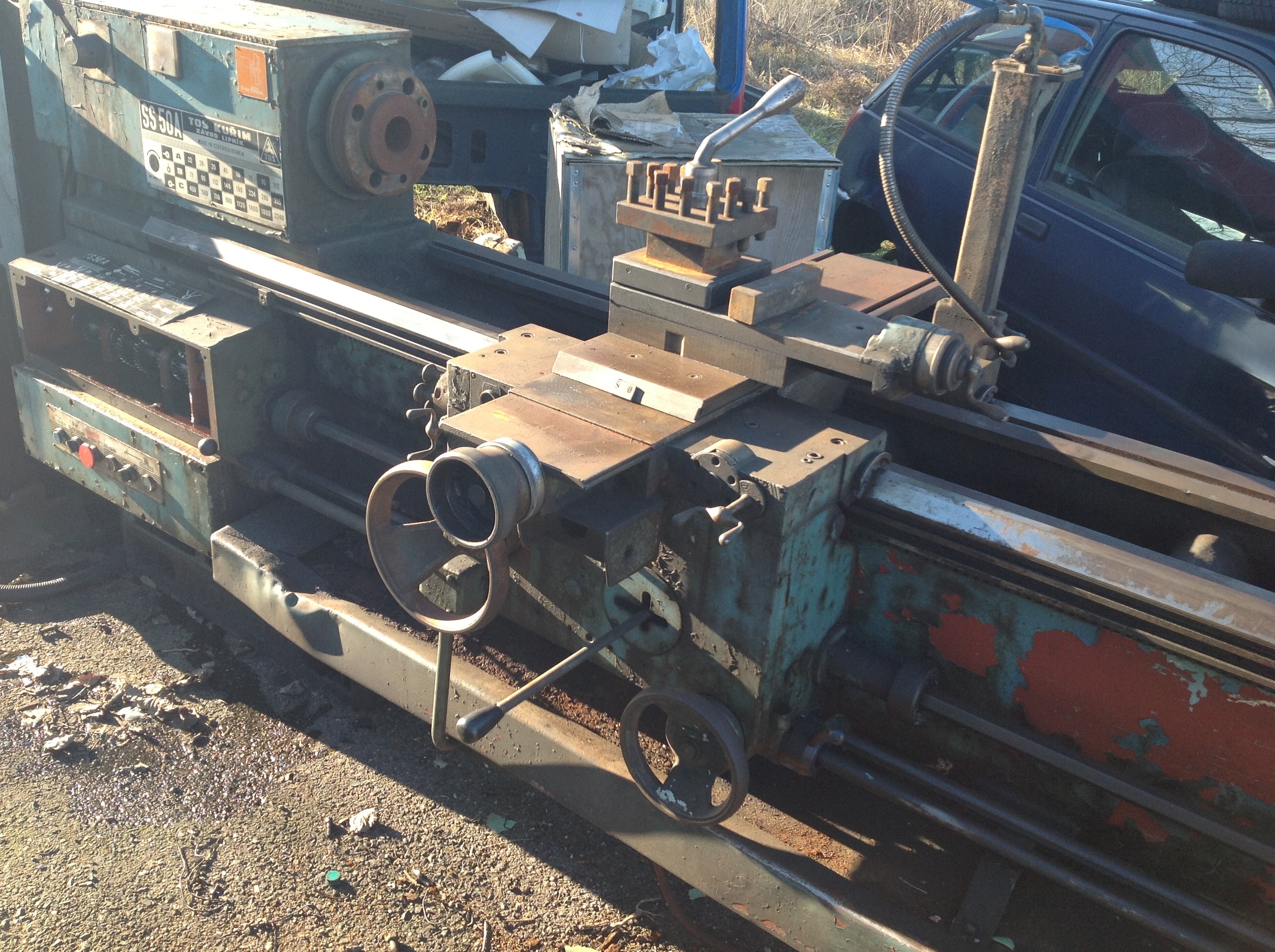 Zdravim kolegove. Chci nabidnout soustruh Tos SS 50a/2000 ktery jsem si poridil, bohuzel jsem ho nechal stat 2dny pred firmou a polomaceni spoluobcane ze soustruhu ukradli viko s radicima pakama na posuvy. Nemam cas to resit, poridil jsem jiny. Tak nez ho odvezu na srotak, zkusim nabidnout. Loze je v top stavu, zadna vetsi rejha. Funkcni, vcetne elektroskrine. Jako reseni by bylo mozne pouzit motor rychloposuvu pres frekvencni menic a upravit prevod. Je to to totozne s SU 50a (hranatej vretenik). Jediny rozdil je ten, ze SS nema trapez na rezani zavitu. Suporty, konik, vreteno je jinak totozne. Pokud by pripadne nekdo shanel nejakou cast neni problem se domluvit. Vse v peknem stavu. Vaha pres 4tuny!
