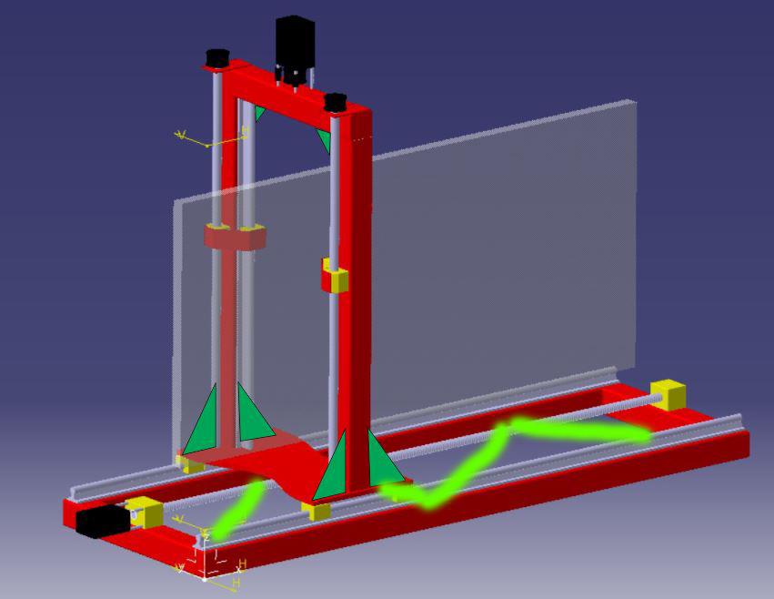 O.K. tak to nebudem prekombinovavat a necham z toho len rezacku, frezu si postavim potom ... ale este by ste mi mohli mozno zo skusenosti poradit v jednej veci... ako si z obrazka mozete vsimnut tak platna na ktorej je Ynovy posuv, je primontovana k styrom vozikom... ako daleko od seba by som ich mal dat?? ( myslim za sebou na jednej podoprenej tyci... ) ja som premyslal o 300mm ( sirka stroja bude cca 500 tak by to bolo skoro do stvorca.. ) ide mi o to aby mi na vrchu ta masina nemala velku volu...