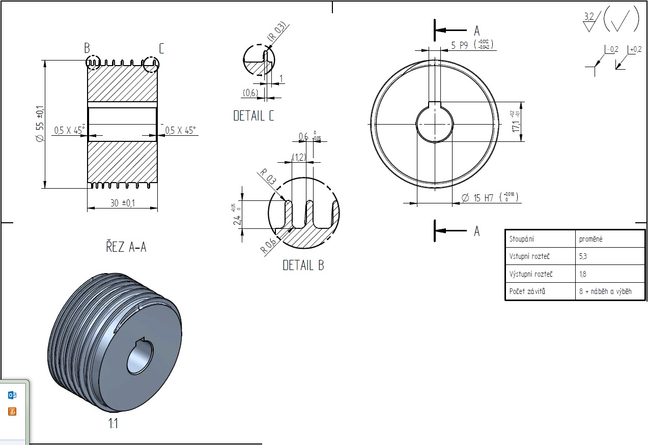 Něco už mám, ale někde dělám chybu a nemůžu na to přijít. konkrétně nemůžu se dostat na tu výstupní rozteč a šířku zubu.