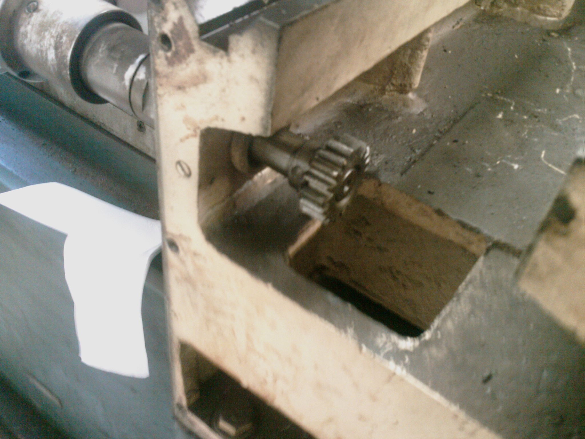 - Ozubené oko není s hřídelí od kliky spojeno těsným perem. Je tam jen kuželový kolík. Bál bych se, že se bude při strojním posuvu otlačovat, nebo že se rovnou střihne.