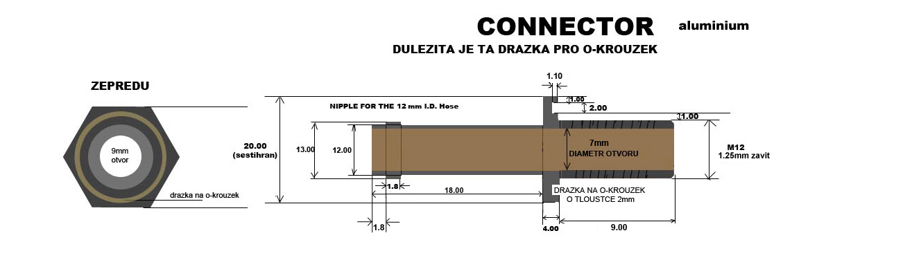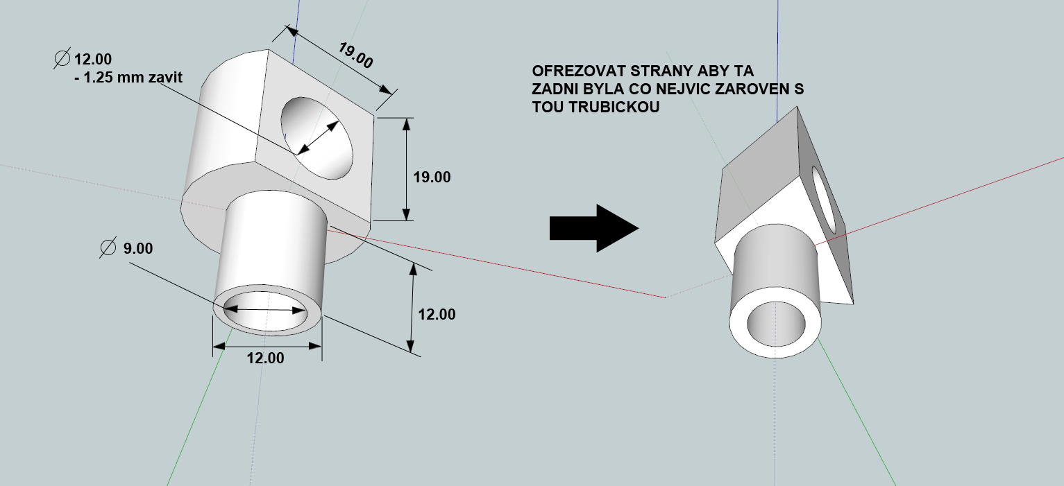 a ten otvor ze strany se napojje pod tim uhlem cca 37° - je to vse na olej u auta... a ta plocha 20x20 a 19x19 (u valecku) je na o-krouzek - takze musi byt fakt hladka.