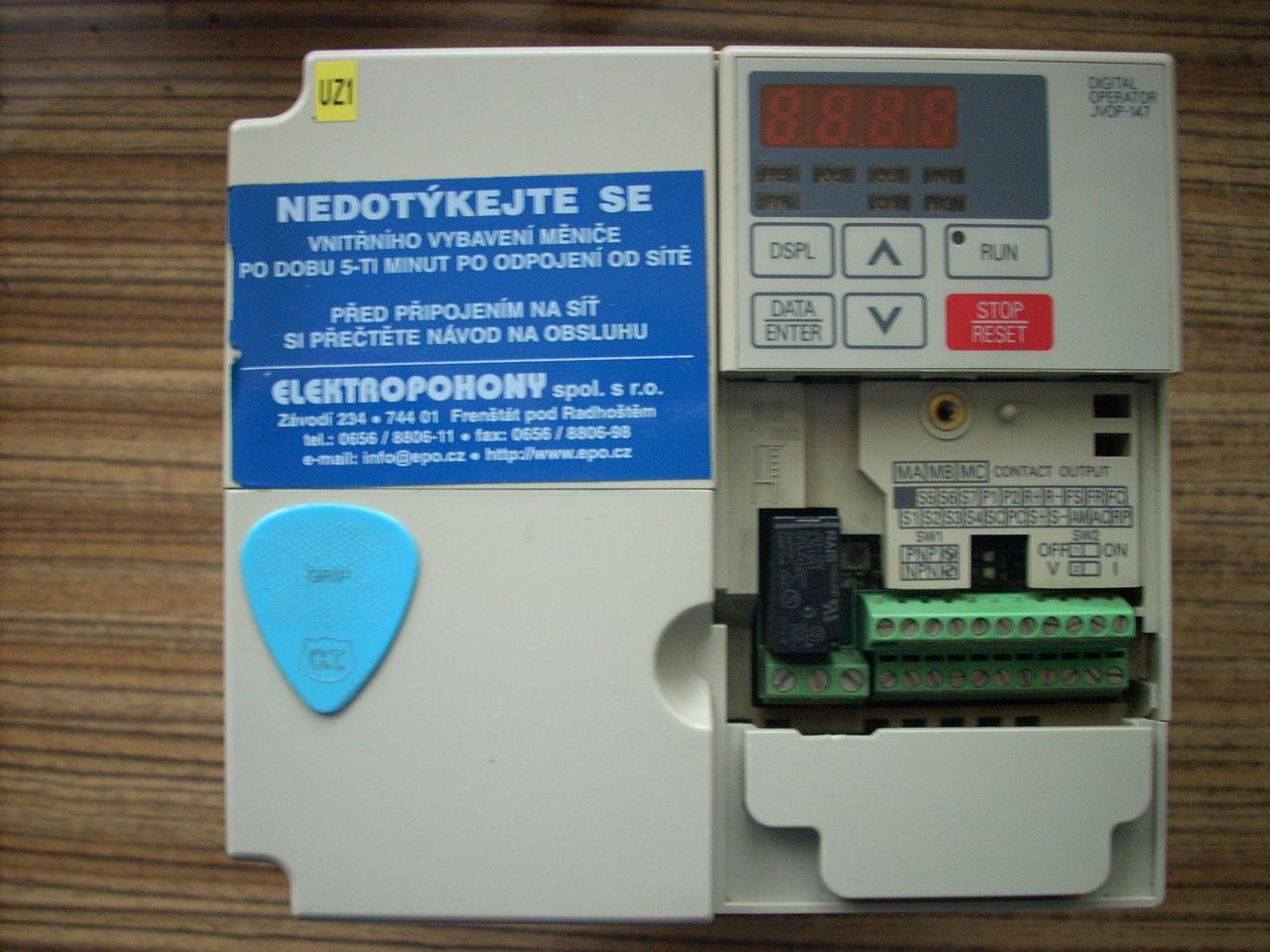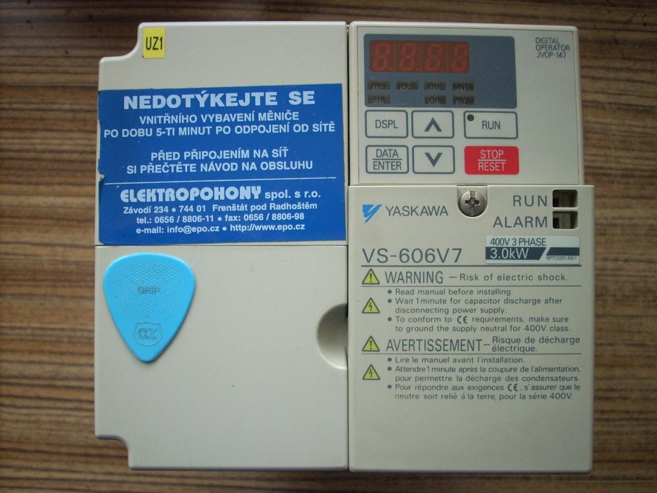 3.Frekvencni menic YASKAWA- 5,5 kW !!! VS-606V7 model: CIMR-V7CC43P0 , SPEC: 43P07, Input: 380-460V 10,6A Output: 0-460V, 0- 400Hz, 7,2A , 5,5 kVA Cena 10 000Kc