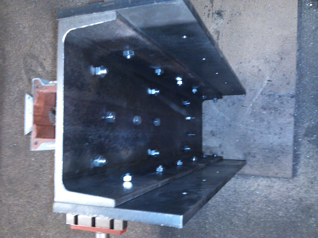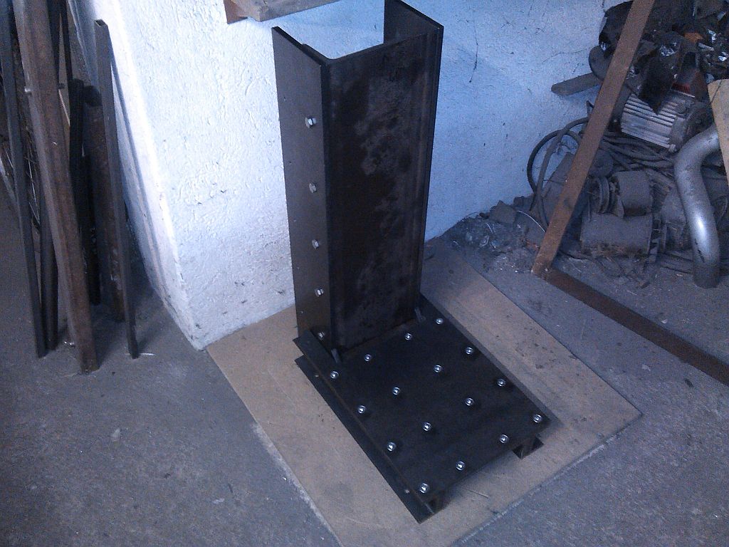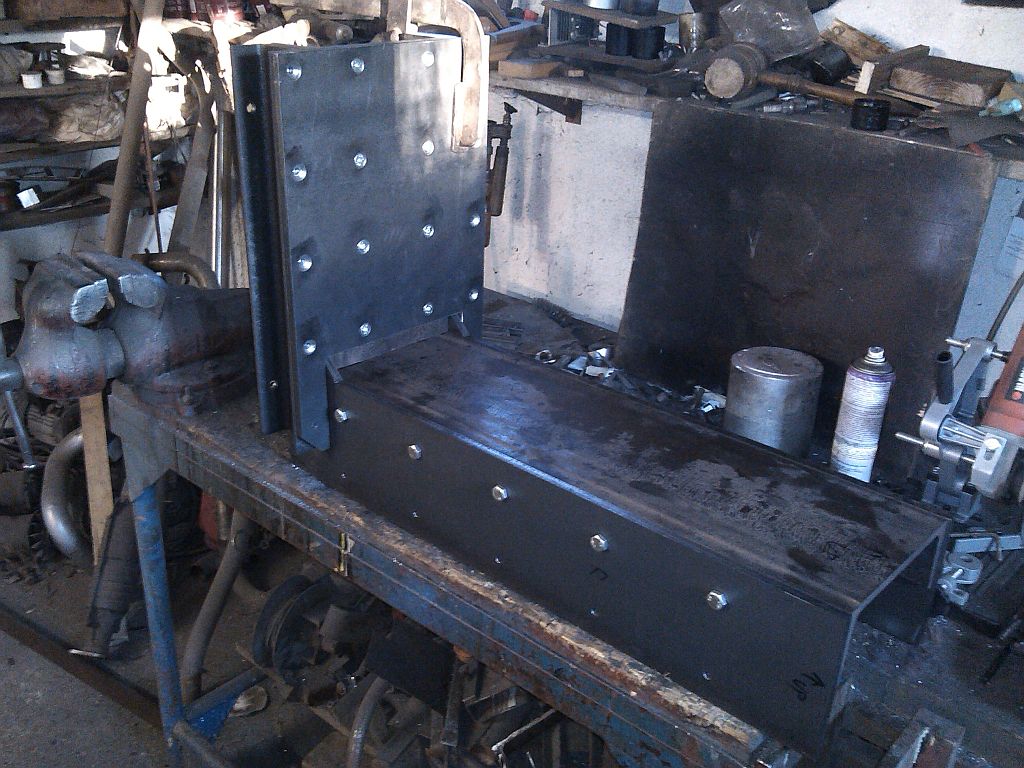 Stůl a nástavba přijdou přimontovat na mnou navrženou nosnou konstrukci, která je vyrobená z 12mm výpalků a profilů UPN220, UPN80. Váha konstrukce se pohybuje kolem 70kg, stůl i nástavba mají každý kolem 60kg. Po složení příjde do zadní strany sloupu ještě rozpěra z jaklů, který bych v případě potřeby mohl ještě vylnit polymerbetonem, ale to snad nebude potřeba.