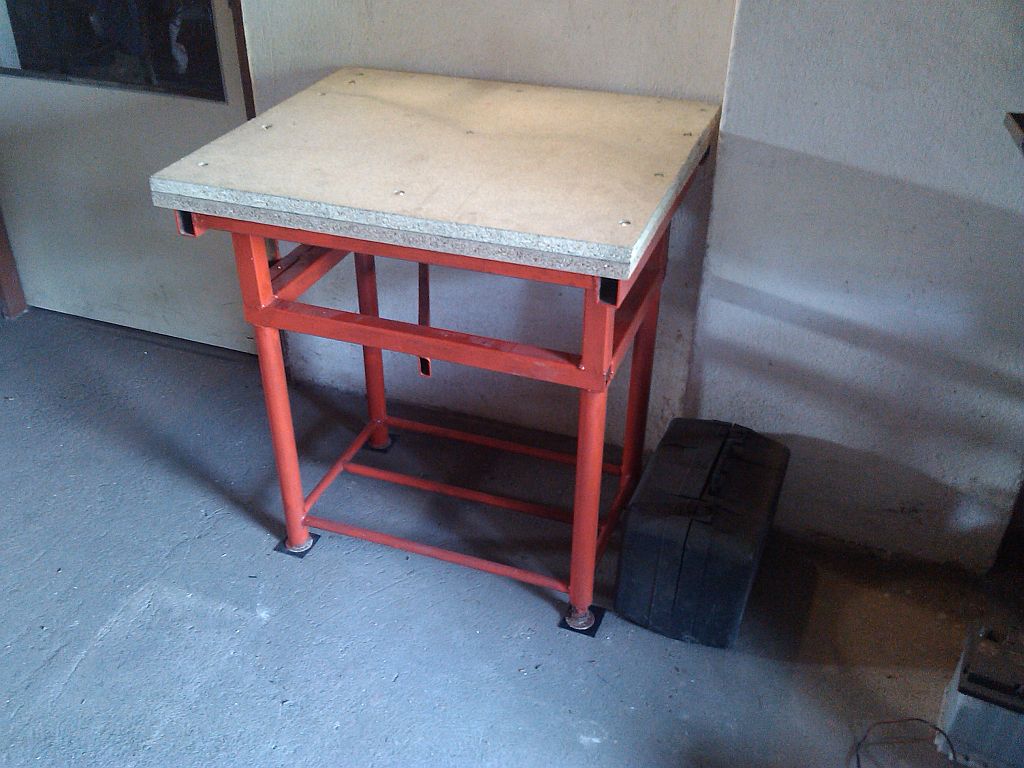 Stůl už je skoro hotový. Ještě jen potáhnu horní desku nějakou slabší gumou, abych snížil přenos vibrací z frézky do stolu a mělo by to být OK. Není to sice žádný zázrak, ale nestálo mně to ani korunu, protože sem zrecykloval co bylo doma k dispozici (kostra je upravená ze staré frézky na dřevo), takže "za ty prachy" dobrý :)