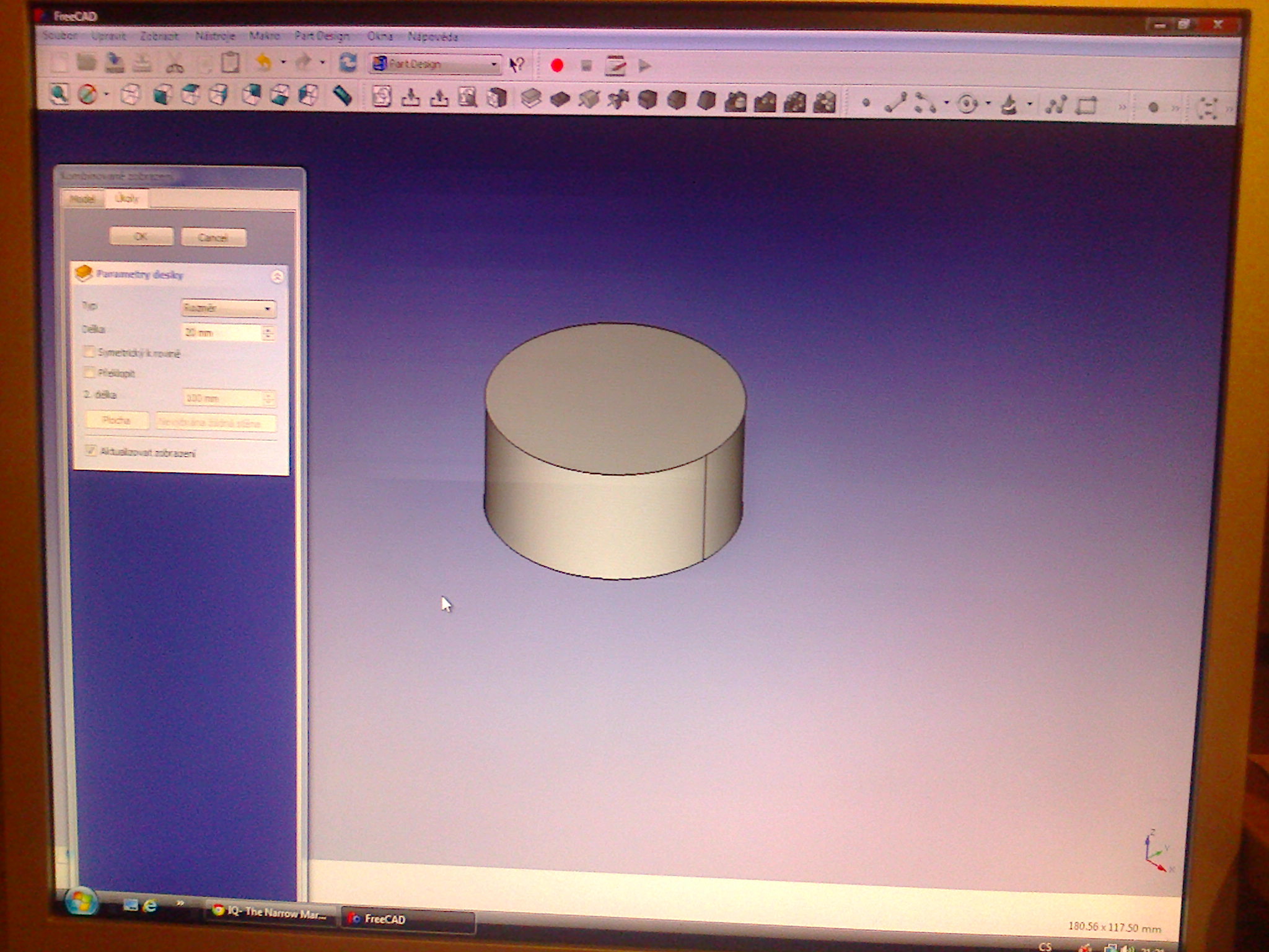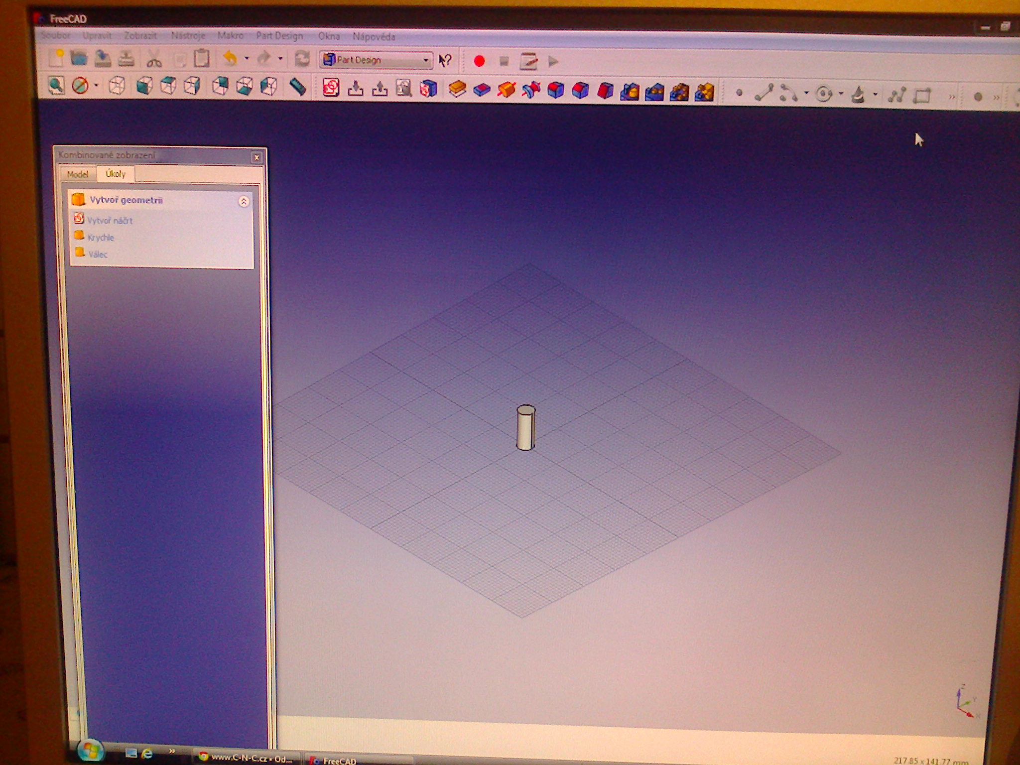 Na nulových souřadnicích se ti objeví válec s poloměrem 2 milimetry a délkou 10 milimetrů.