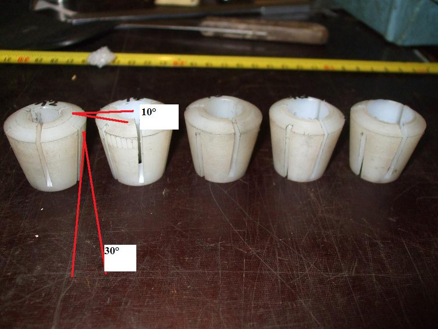 * dutina má vrcholový úhel odhadem tak 16° a v matici to zkosení odhaduji na cca 30° - ale lepší by bylo mít rozměry odměřené přímo z kleštiny ?