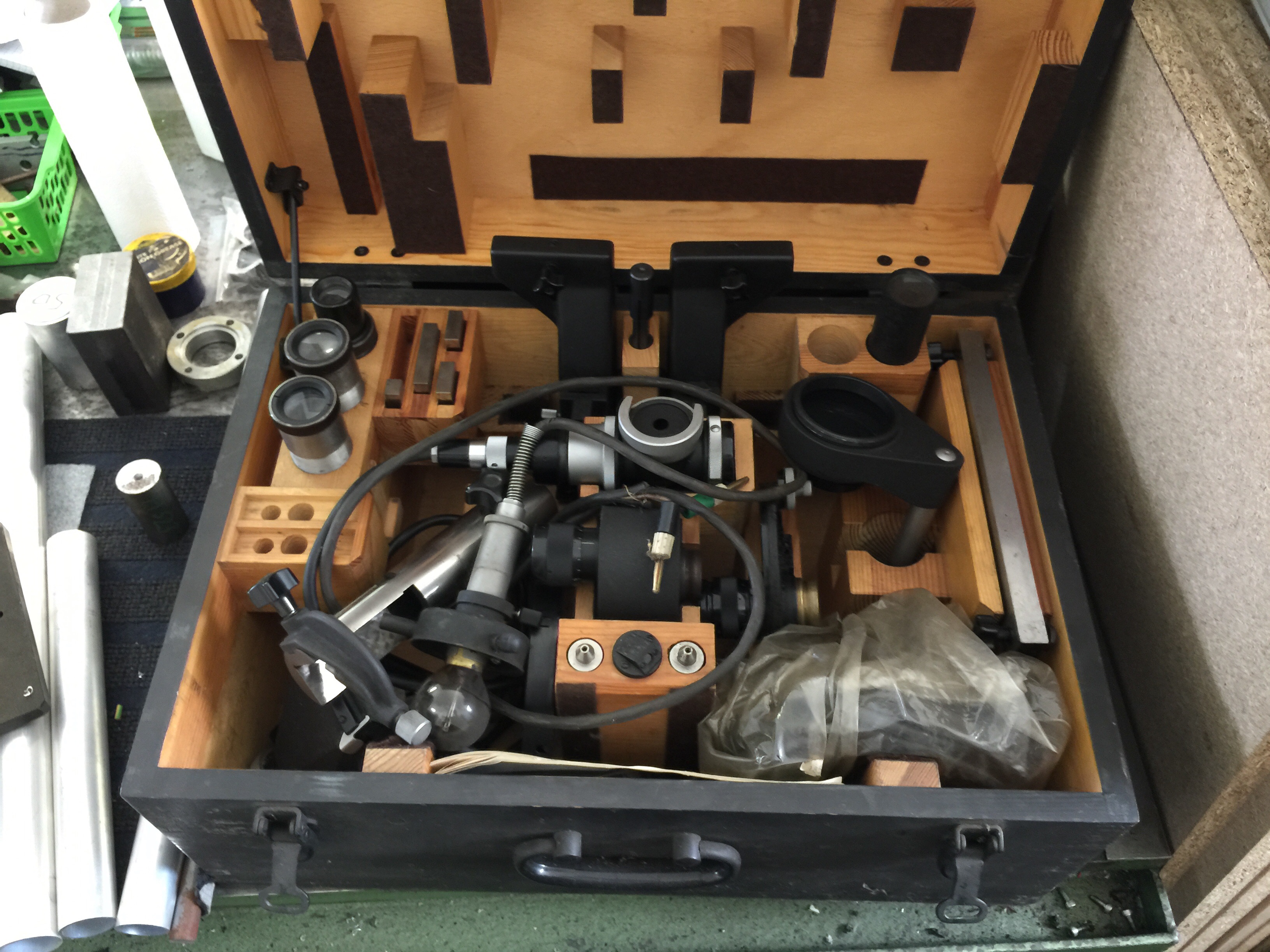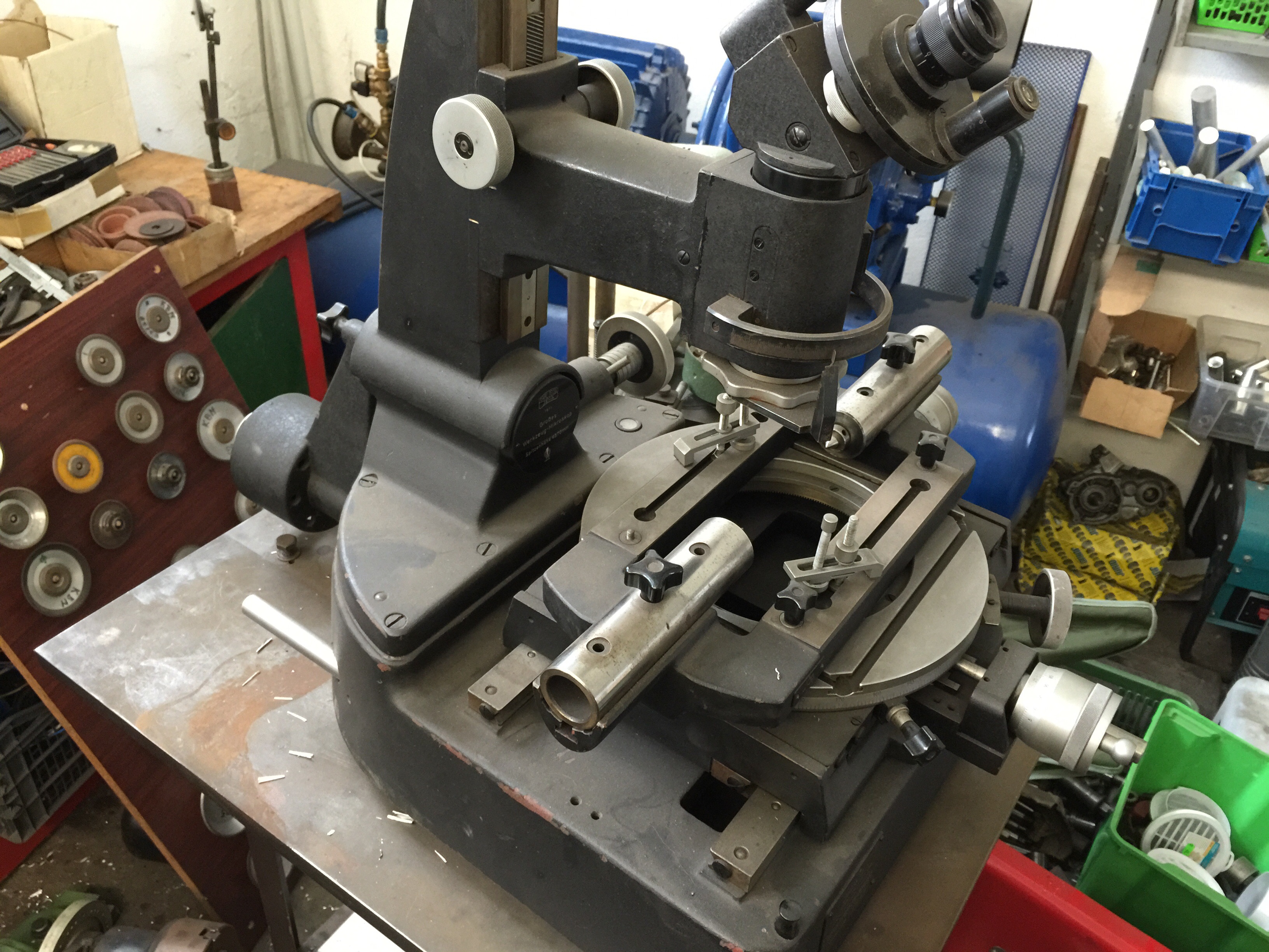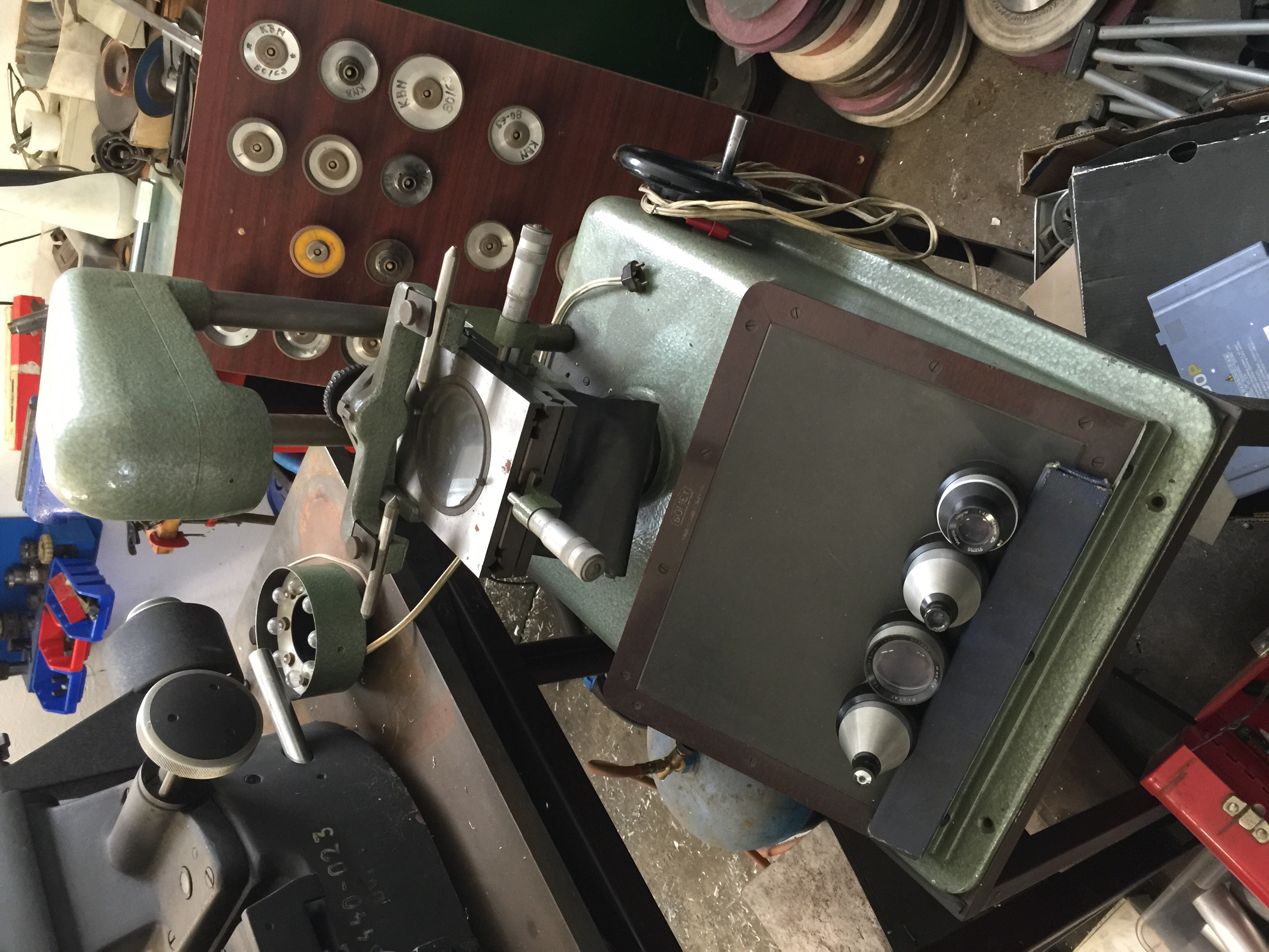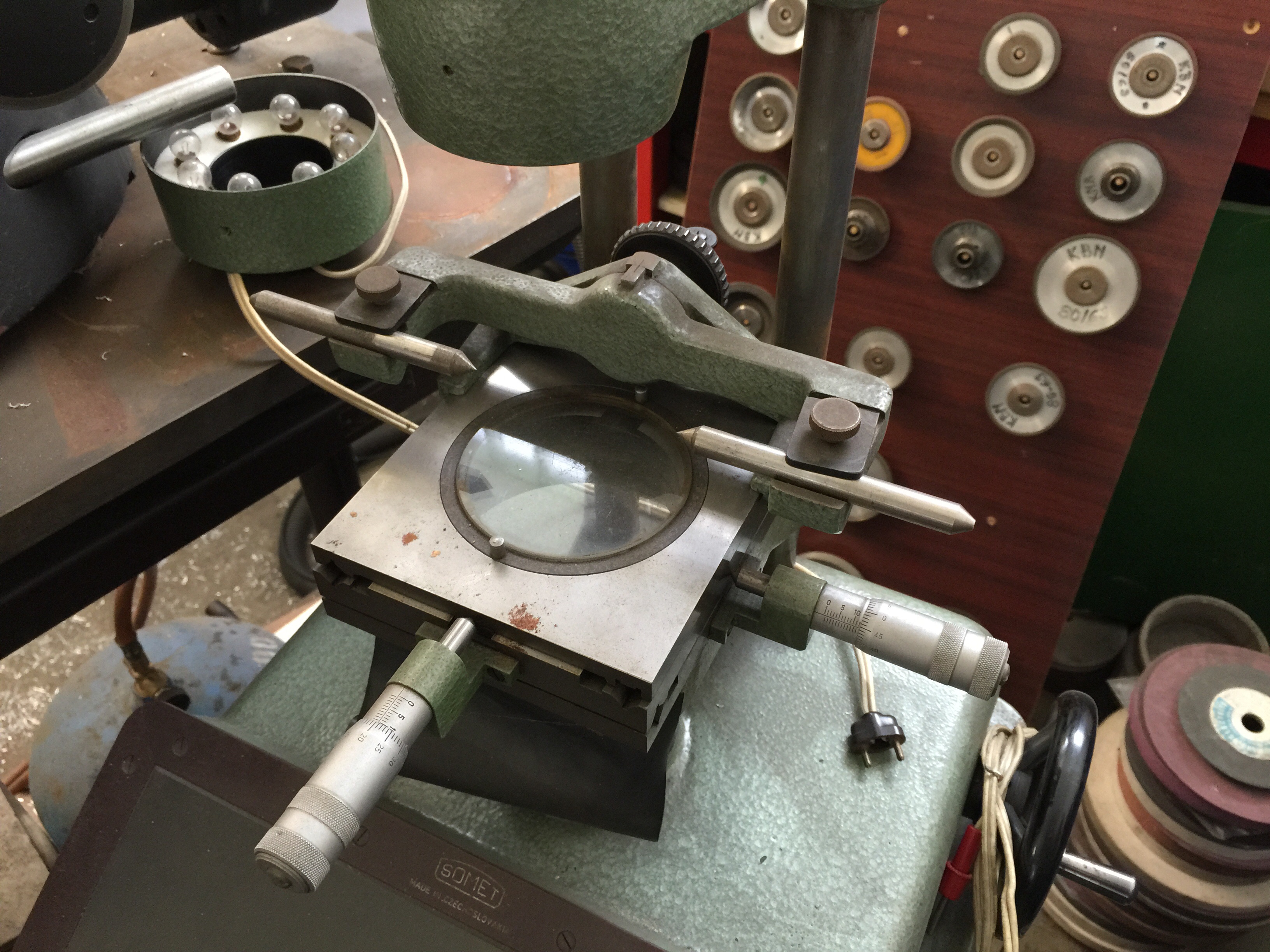 Mam k nemu bednu prislusenstvi, ruzne kukatka na mereni zavitu, radiusu atd.. Vetsina prislusenstvi ani nevim k cemu je. Vse v original bedne. Mikroskop ma posuvy na kulickovem vedeni, otocny stul, ruzne hroty atd..