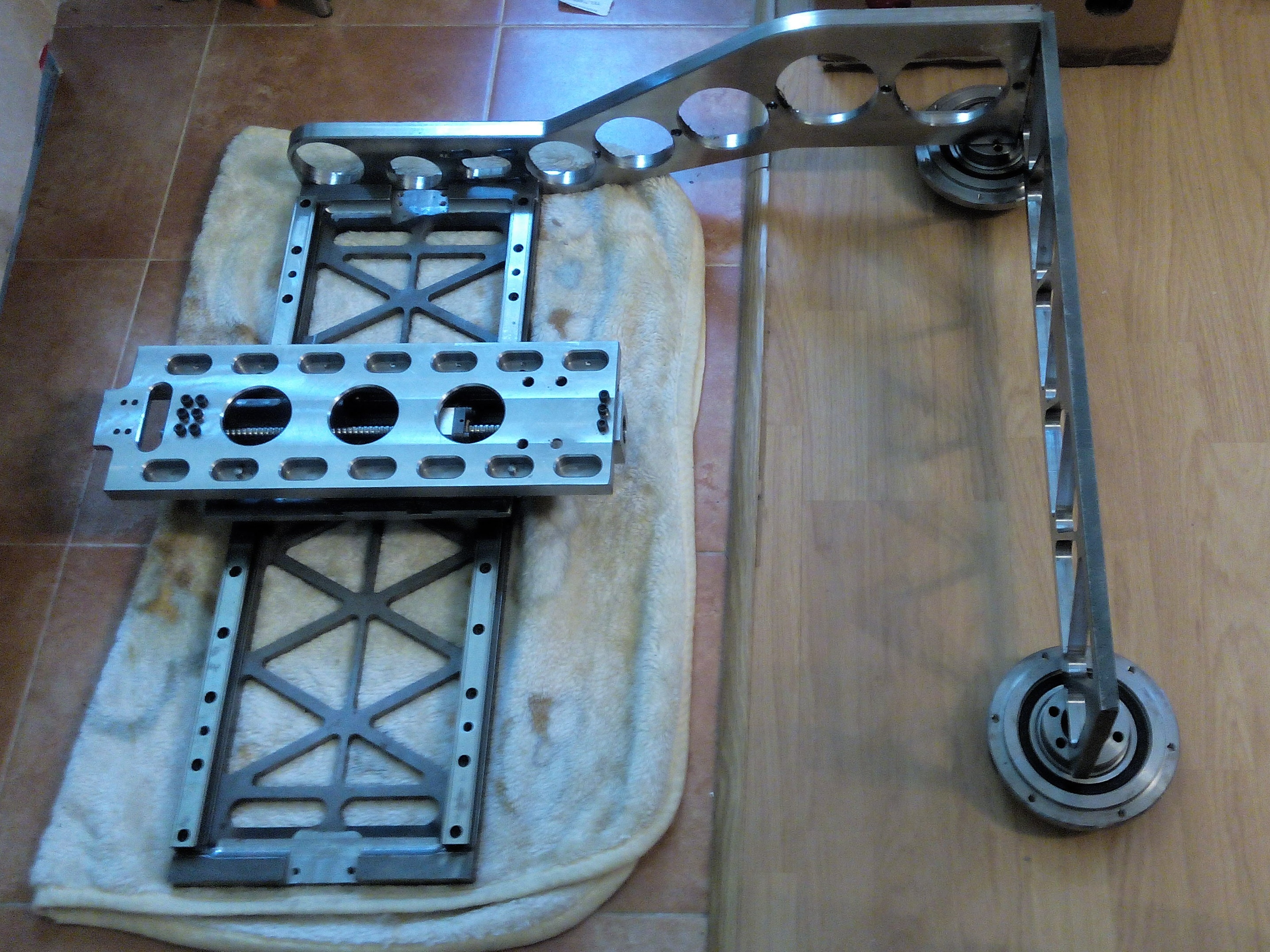 Diky za komentare rozpracovaneho projektu ovsem vzhledem k tomu ze ani jeden jste nevidel finalni podobu vsech vyztuh a vykresove dokumentaci tak me docela prekvapuji a vzhledem k tomu ze se tu bavime pouze o rozestavenem portalu je predcasne delat zavery ale nijak me to neodradi protoze jsou to fotky z zapocate stavby takze to chce trpelivost a ne resit neco na co sem se neptal a neresim a ani se nestydim vedle cnc ala skrin se bat o tuhost pocitanou nasim projektatem na prihradove nosniky jak za y tak z bocnic budou dalsi vyztuhy a po kompletaci dojde k uzavrenemu trihrademu profilu o tuhost opravdu strach nemam navic je to modelarska freza to za prve a pouze k mojim ucelum drevo plast ja si nemusim stavet profi stroj na obrabeni ten mam v praci