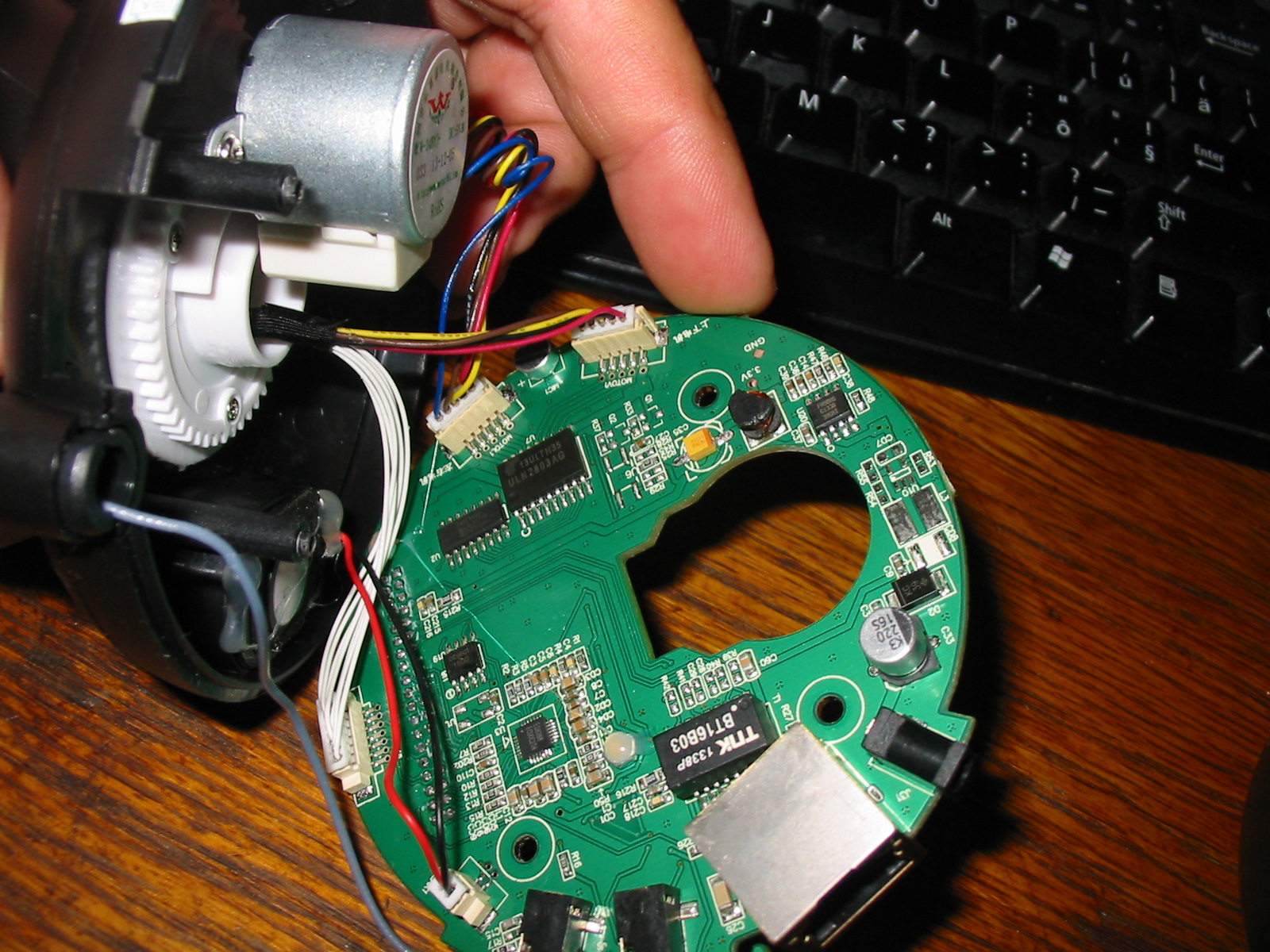 pises ze ziadna elektronika a odfotis tam dosku s kopou suciastok. Vyzera to ako klasicka IP kamera. POE napajanie ()power over ethernet). Nie je pripojena na web, ale na ethernet kabel. motorceky krokove a kruti s nimi ta neexistujuca elektronika. Spinace su pre zistenie niektorej koncovej polohy. Pohybuje sa zrejme tak ako je naprogramovana, a nie ze pride na koniec a sama sa prepne na iny smer. Bezne sa nastavi kamera tak ze 3 sekundy je otocena na bod A, potom prejde na bod B, tam bude 7 sekund atd.