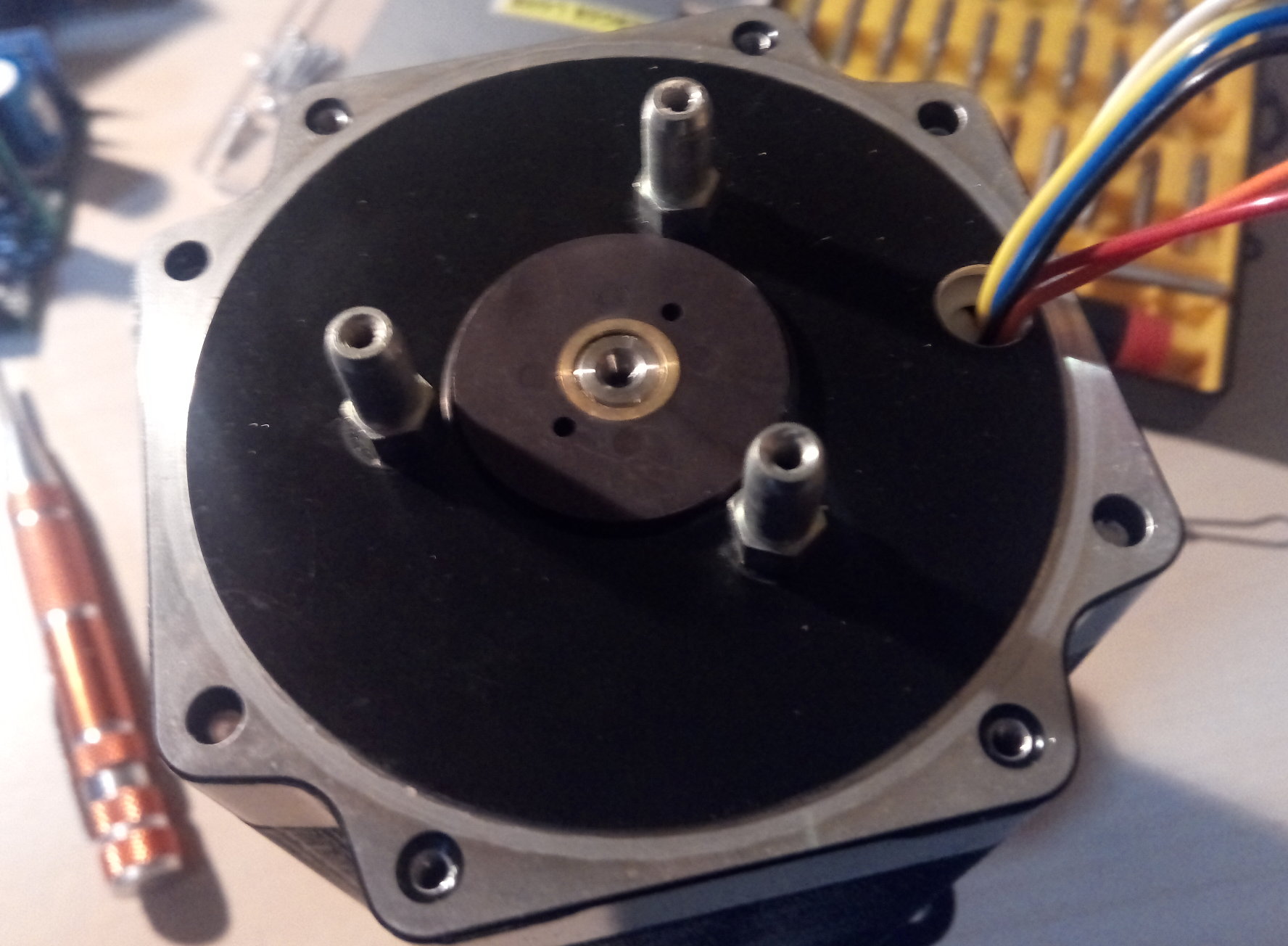 Tak dnes proběhl testík v Positecu v Brně a elektronika motoru je mrtvá. Zároveň jsem se dozvěděl, že se nejedná o servomotor ale o krokový motor s vestavěným driverem a halovou sondou, která je schopna 1x za otáčku detekovat ztrátu kroku. No nic, stejně je to jedno, protože teď asi nastane definitivní vykuchání elektroniky a nahrazení externím driverem.