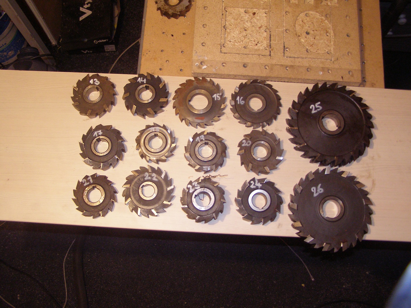 Nabízím větší množství kotoučových fréz, průměry 70-200mm, celkem asi 60ks u některých typů je více kusů. Téměř všechny jsou naostřené. Nejraději bych prodal jako celek za 80kč/ks, jinak asi 100-150kč/kus podle velikosti. V případě zájmu můžu nafotit detailněji.