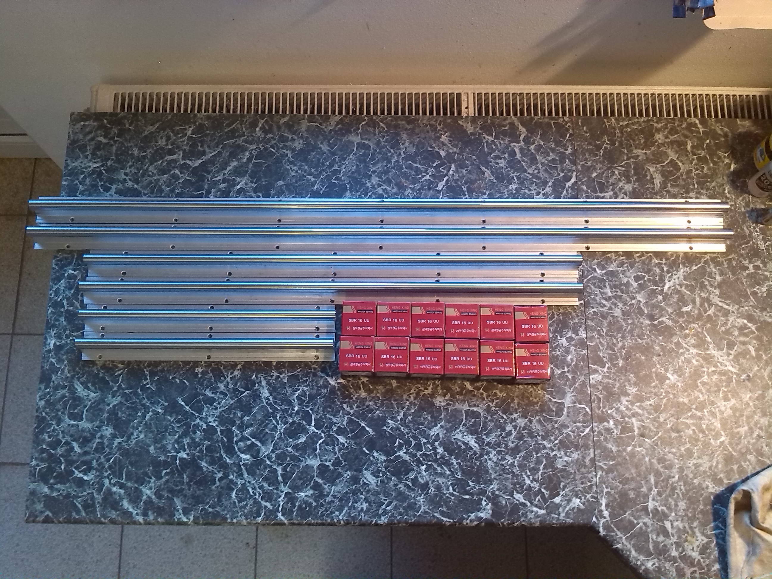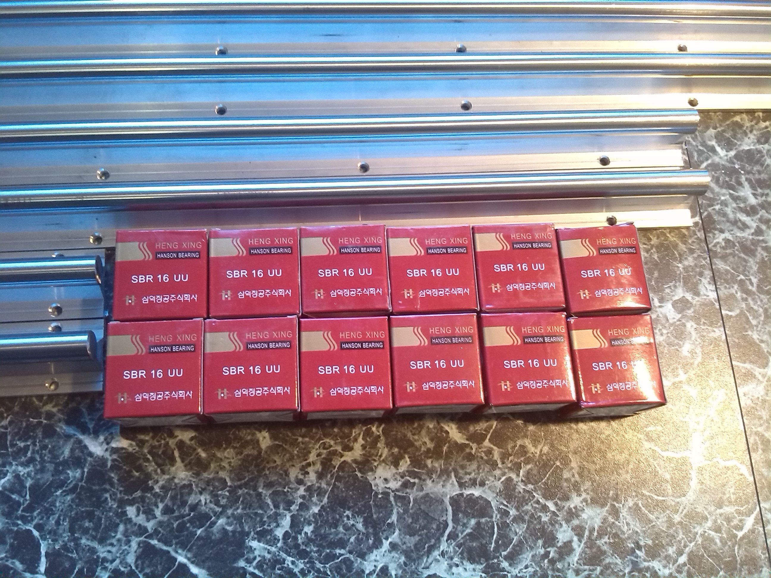 Prodám nepoužité podepřené tyče o průměru 16mm a vozíky SBR16 UU nastavitelné: