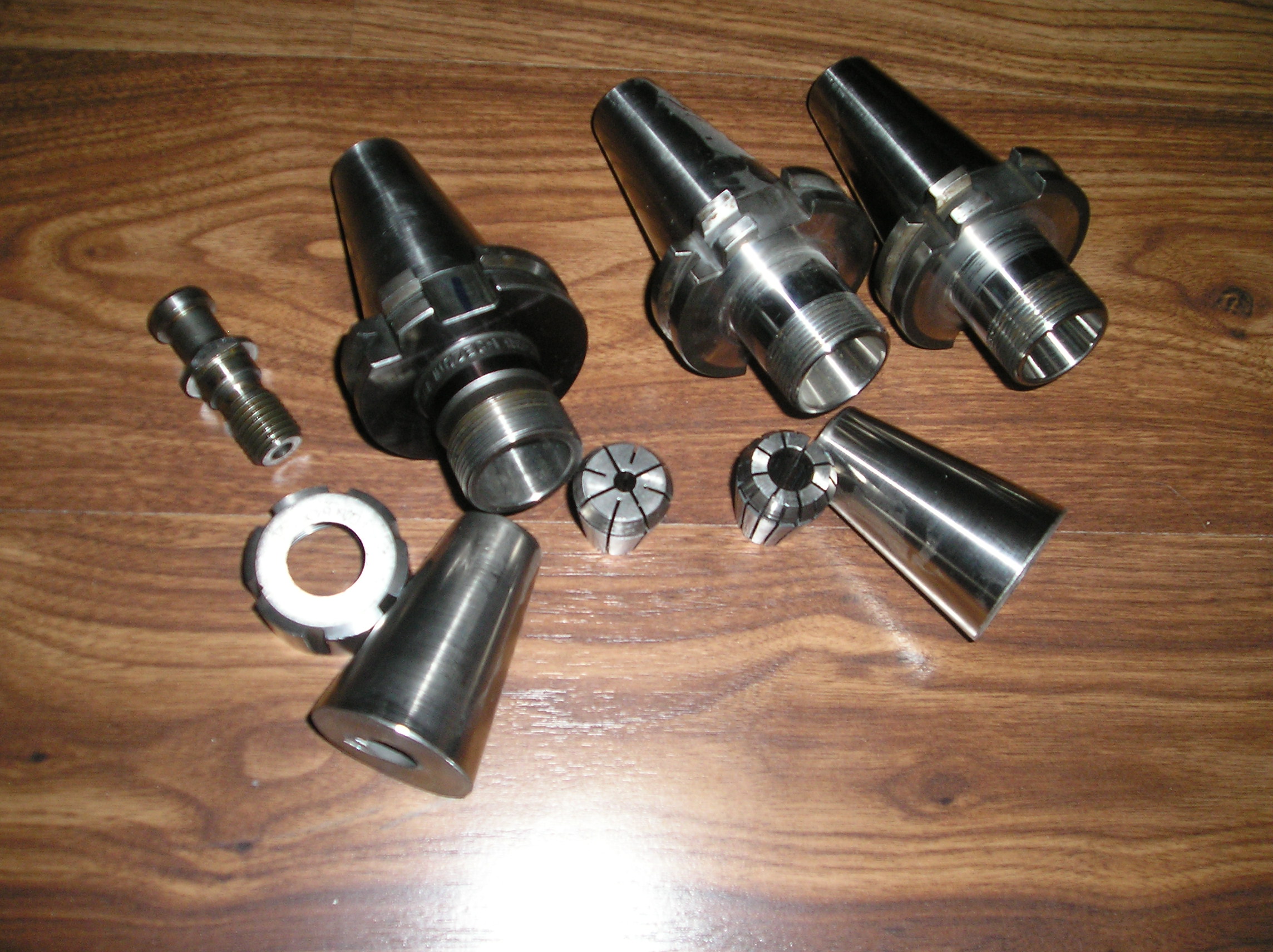 Prodám 3ks ER upínače ISO 4O dle foto na kleštiny ER16 + jedna matice a kleštiny pr.12mm a pr.6mm a 1ks vtahovací trn, 2ks odpíchnutých ISO 40 kuželů.Cena komplet 1700kč včetně pošty.