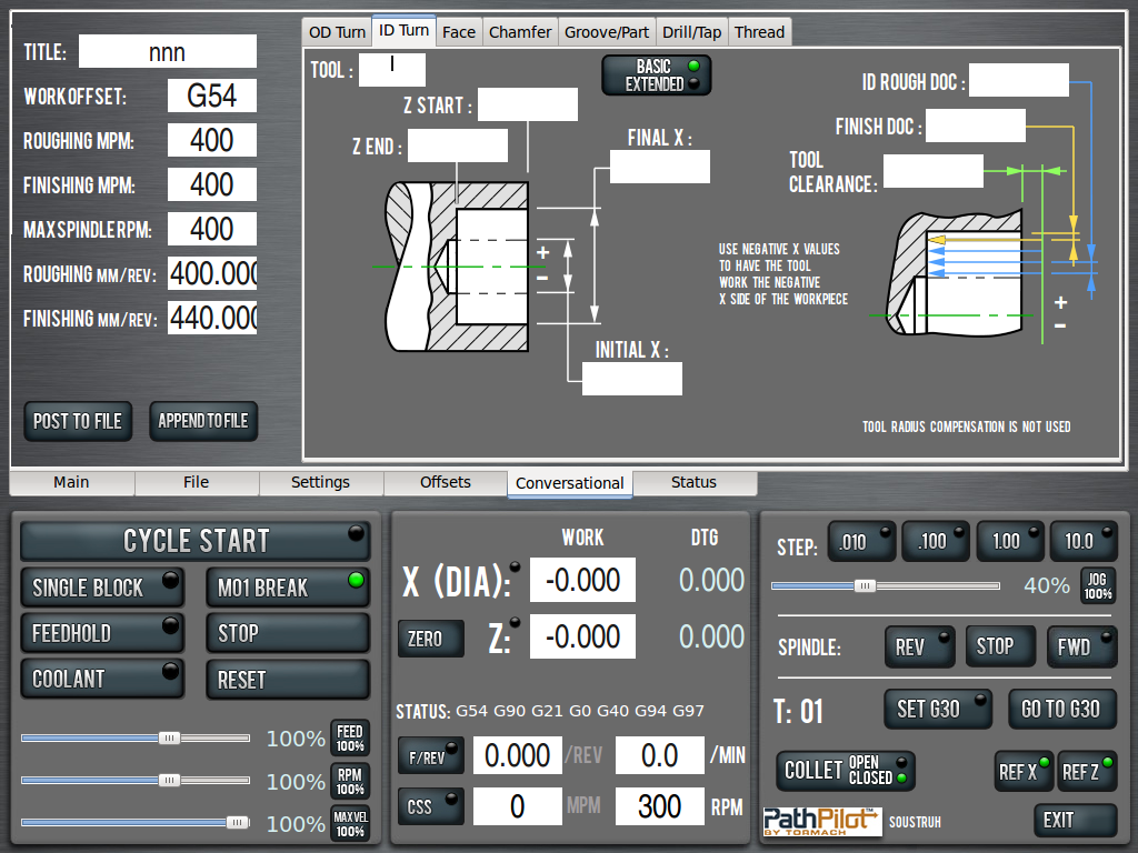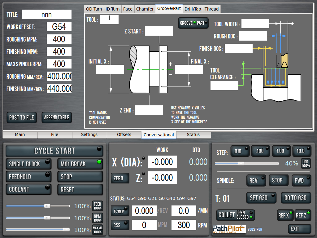 Soustruh má i utility pro jednoduché programování – čelo , průměr , drážka , vrtání , závit apod. , dále docela propracovaný systém pro korekce nástrojů ( na frézce dokonce podporuje externí měření nástrojů ) .Frézka je udělaná podobně má navíc ale obrazovku pro automatické najetí obrobku pomocí sondy a výměník nástrojů . Na YOUTUBE je spousta videi k PP .