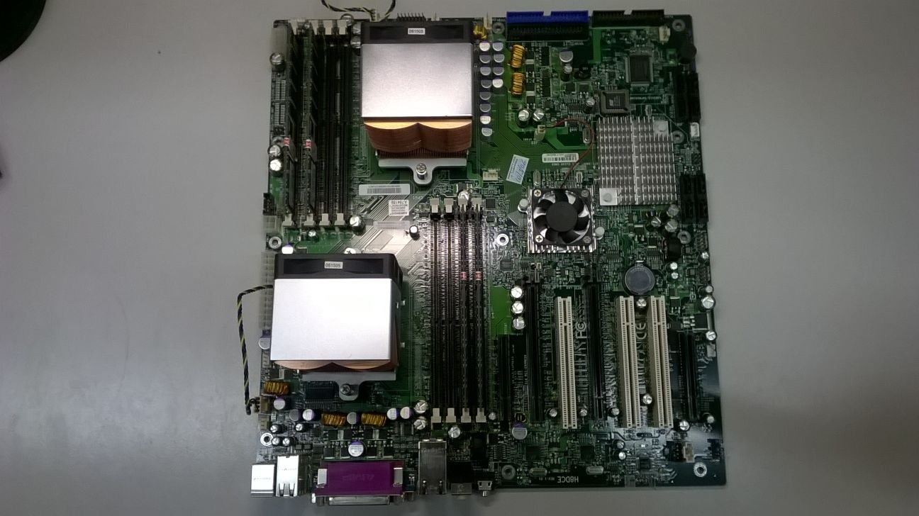 Použitý ale plně funkční MB SUPERMICRO H8DCE včetně 2x CPU Opteron 252 a dvou GB DDR 400 RAM tak jak je to na fotkách. Prodáno