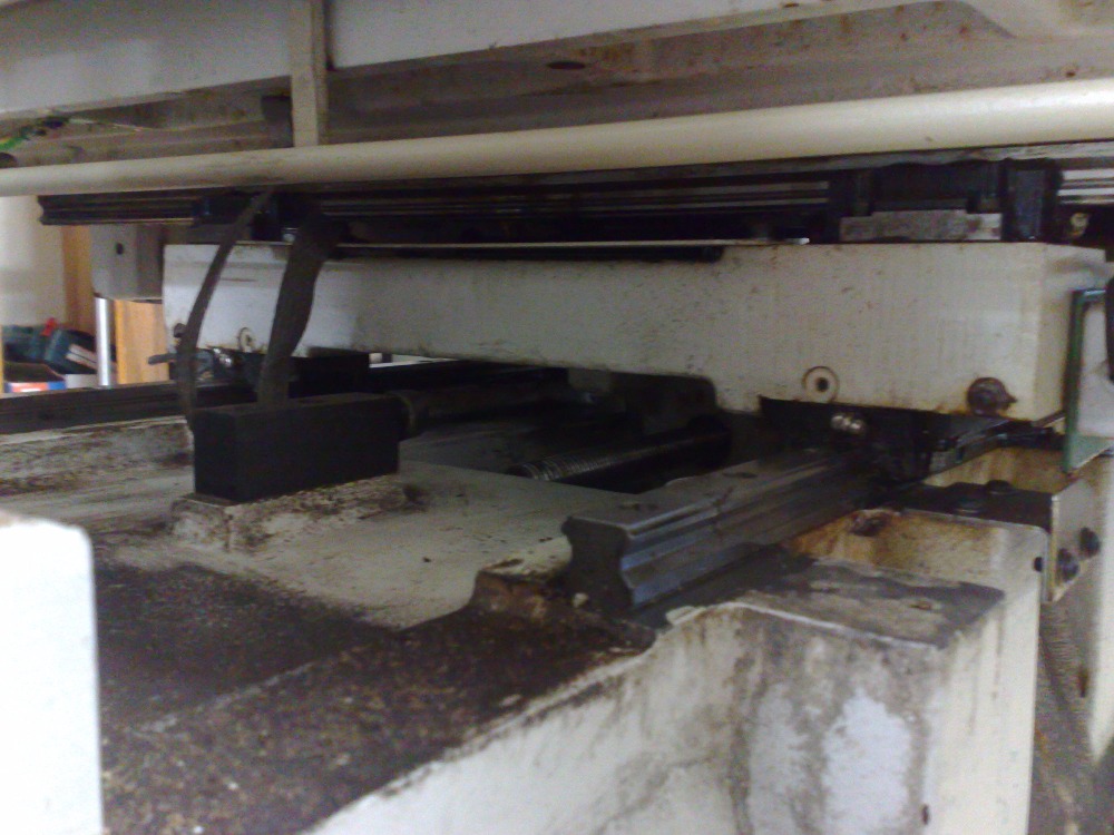 Max. hmotnost obrobku = 450kg. Na všech 3 osách lineární vedení THK a kuličkové šrouby. Stačí osadit serva nebo krokáče. Na fotkách jsou ještě původní DC pohony. K základu je možné přïhodit i původní řízení hloubičky Futura II a vanu (jak to vypadá vcelku se dá dohledat přes google) Podle všeho je v řízení špatná jedna nebo dvě karty. Asi by to bylo i opravitelné, ale podle mě s nejistým výsledkem. Cena 35 000,- za komplet mechaniku s vedením a šroubama.