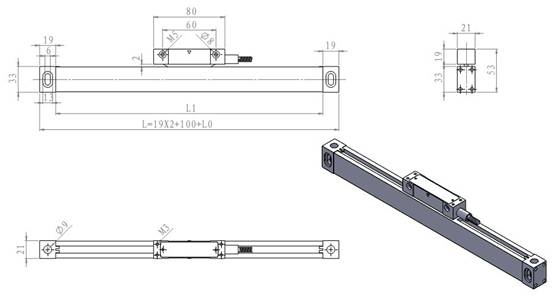 V ceně dvě optická pravítka HXX s rozlišením 0,005mm (rozlišení pět tisícin milimetru) ve vámi objednané délce od 100 do 1000 mm.