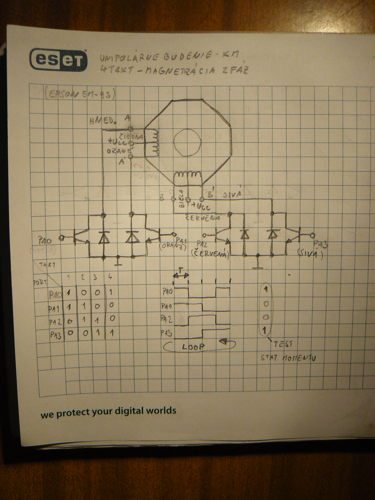 Nevyvyjam unipolarny driver ale nejako zacat musim a unipolarne riadenie je to jednoduchsie. Driver ktory chcem vyvyjat bude bipolarny a ovela zlozitejsi a narocnejsi na cas ako toto skusobne zapojenie.
