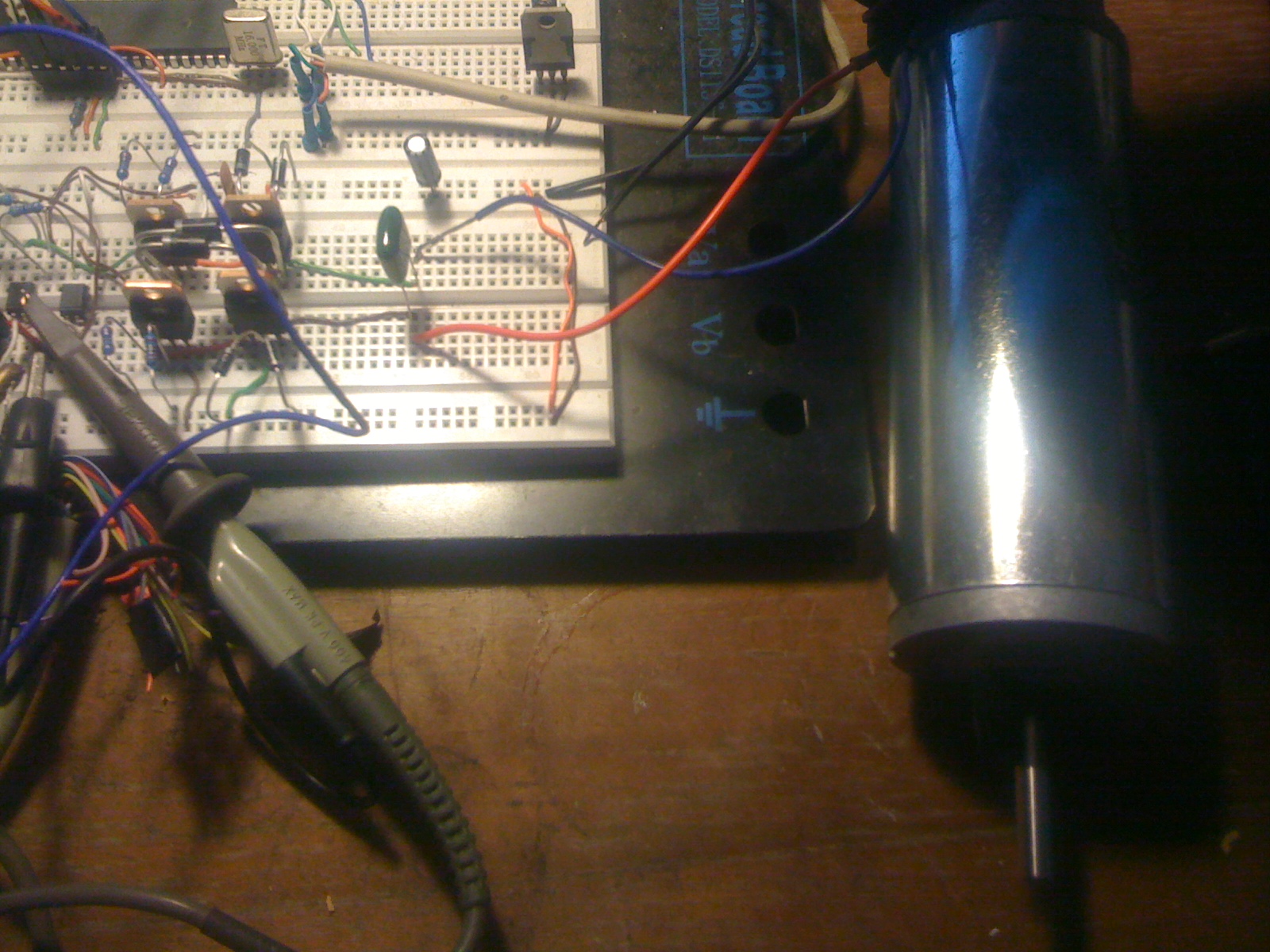 Pěkné, už si zkoušel co se stane když ten motor roztočíš na max a mechanicky zabrzdíš? Myslím že by to minimálně chtělo udělat proudové omezení :D