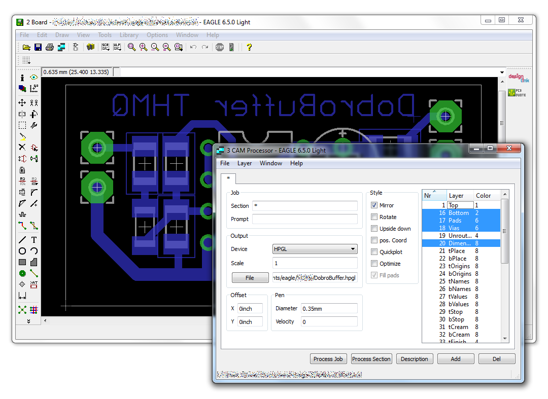 Díky za návod, už to kreslí jenom musím mít nastaven výstupní formát .plt potom to konvertoruju na .tap a všechno jede. To vrtání by bylo pro cnc skvělý a myslím, že do g kodu přiložím výstup pro vrtačku z ulp gkode2, nebo jestli existuje lepší varianta tak jsem opět za každou radu rád.