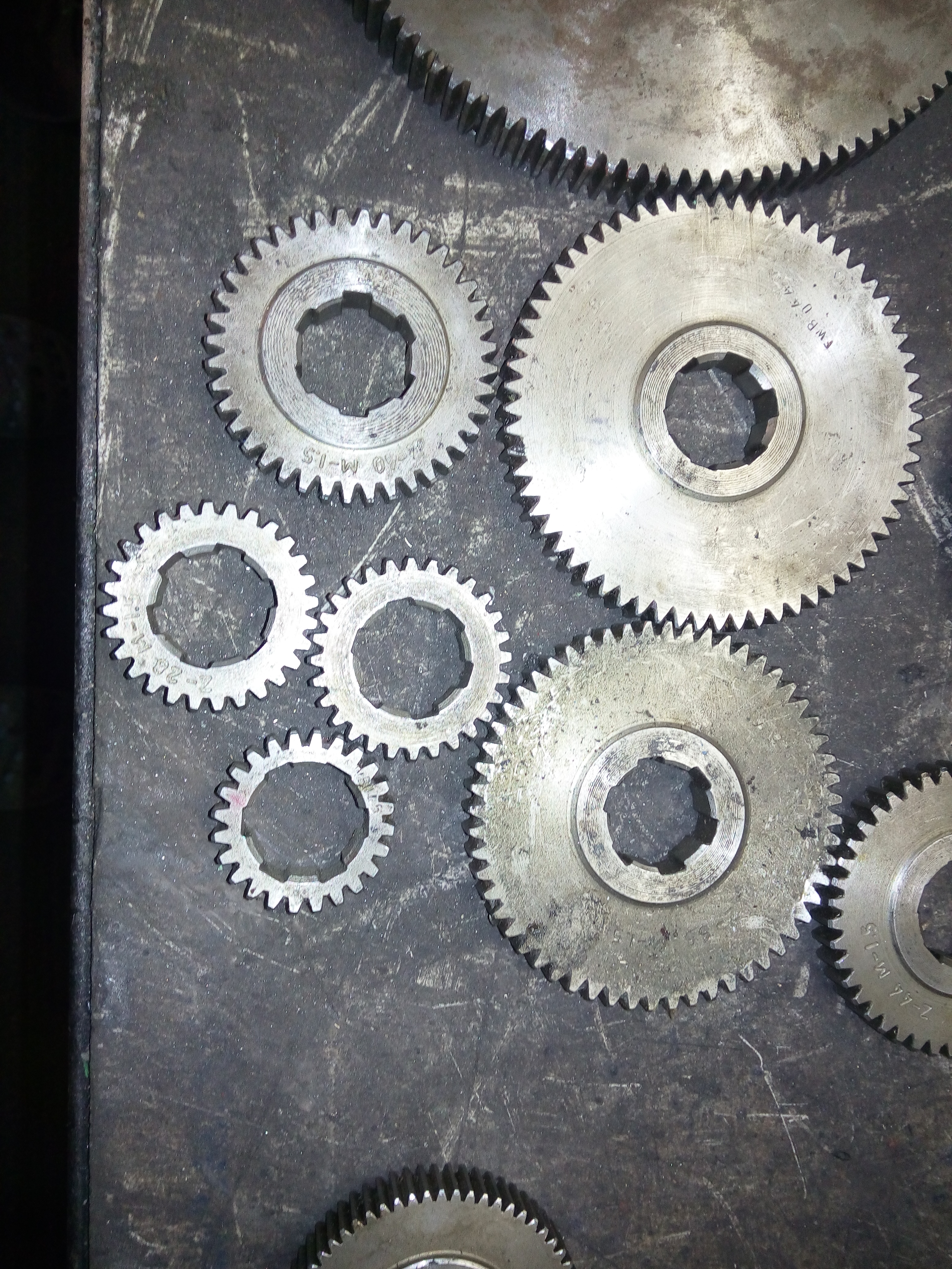 ke svému SN 20 jsem sehnal kola o modulu 1,5mm, jaké jsou tam normálně u výměnných kol, ale ze soustruhu SUI63, s rovnobokým drážkováním, D=28mm, d=23mm, šířka "zubu" 6mm. Kola mají šířku 18mm (jako u SN 20), takže po úpravě díry (převrtání, vyvložkování pouzdrem s drážkou) by byly použitelné i k SN 20. A.