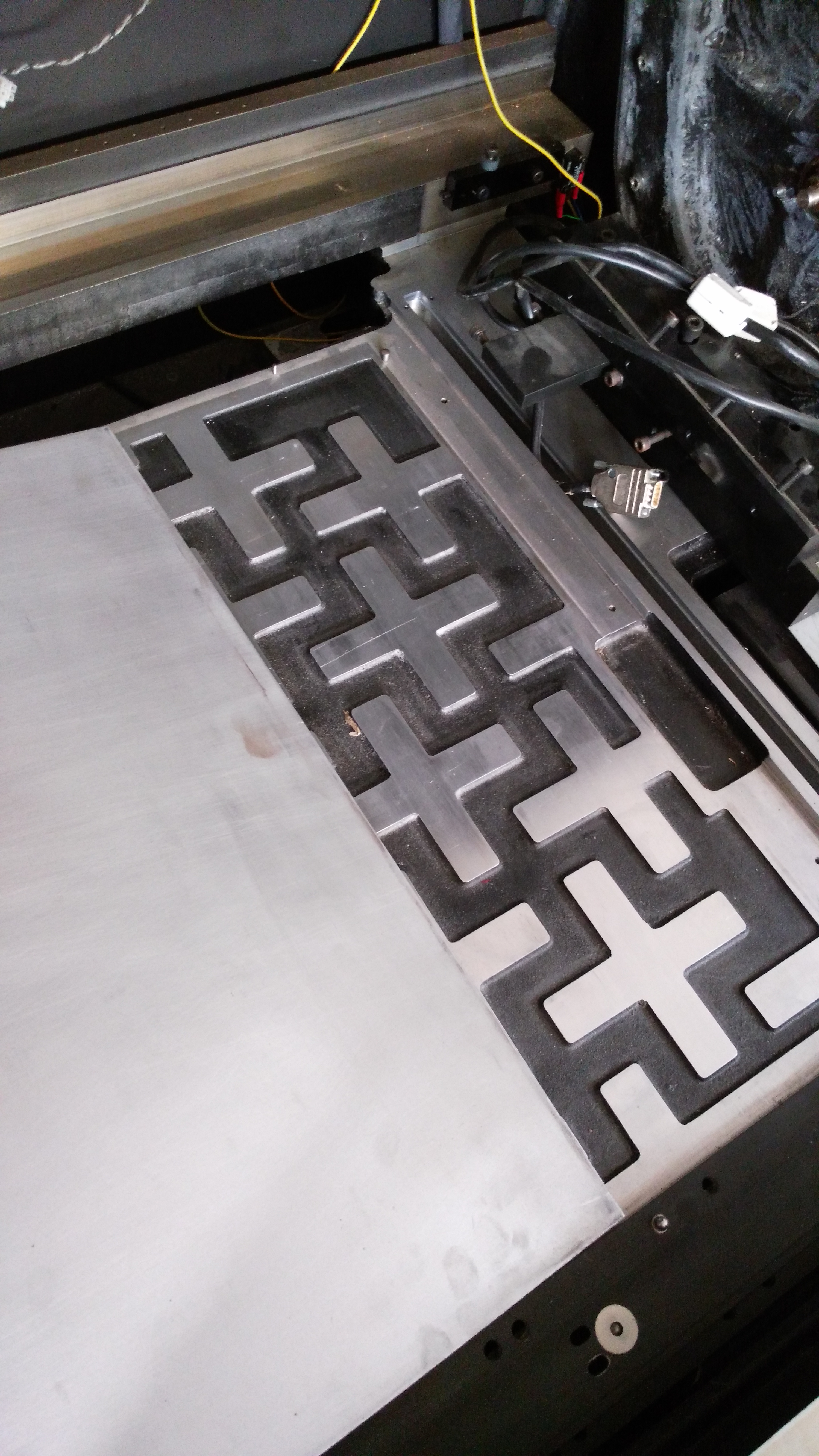 Překáží mi tu základ na portálku/ laser. Jako základ je odlitek vakuového stolu. Vše je zakryté otočným výkem.