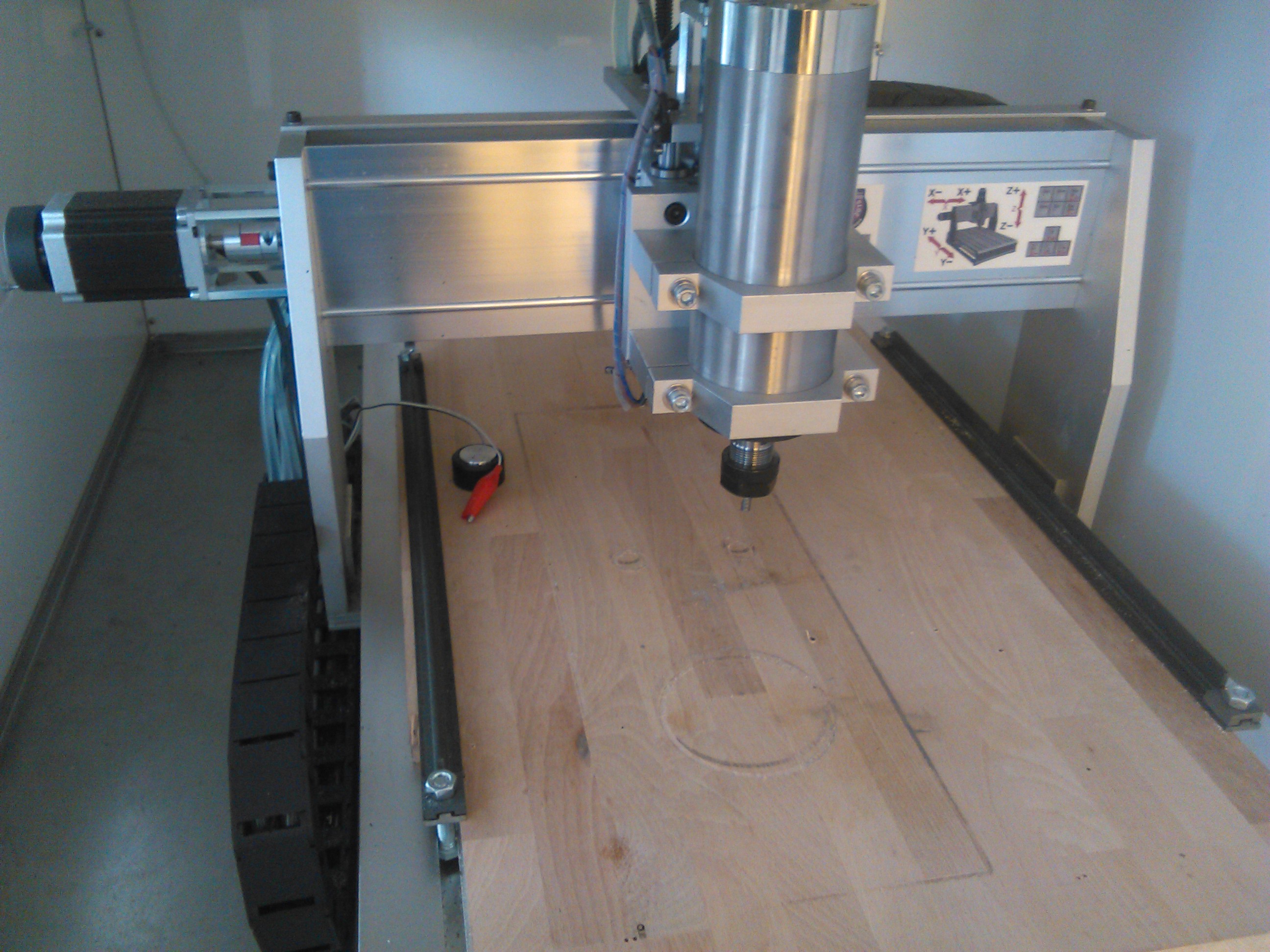 Nabízím k prodeji CNC frézku s pracovním prostorem 600X400X60 , vodou chlazené vřeteno,osa x podepřené tyče,osa y nepodepřené tyče,osa z nepodepřené tyče,stroj je vybaven: koncové spínače,sonda délky nástroje,krokové motory 5,6Nm,kuličkové šrouby,chladící zařízení,osvětlení pracovního prostoru,krytování.Prodávám i včetně PC a plnou verzí programu Mach3.Předvedu v chodu.Téměř nepoužívaná.Cena 75000,- při slušném jednání jsem ochoten dát slevu.