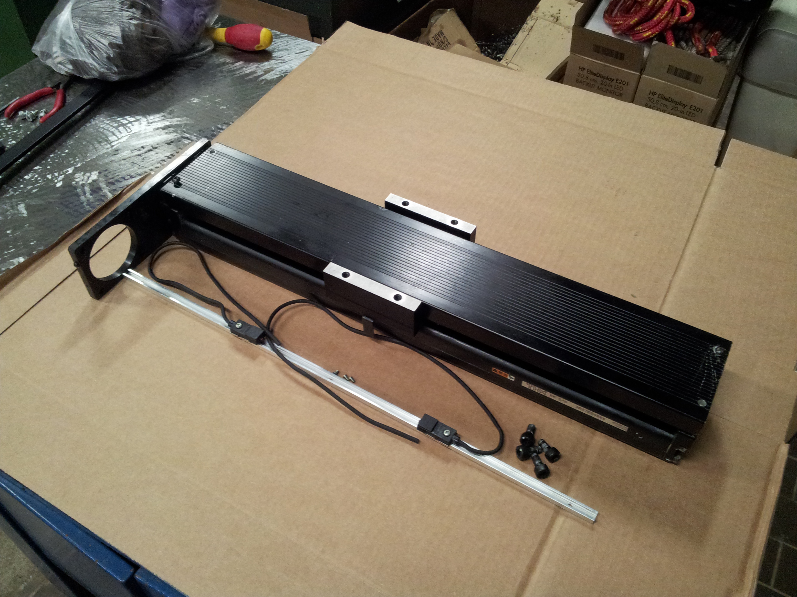 Prodám, pouze jako celek, komponenty na stavbu konstrukce kompletního tříosého polohovacího systému s rozjezdy 800x500x330 ať už frézky, vyvrtávačky, gravírky, řezačky, laseru apod.