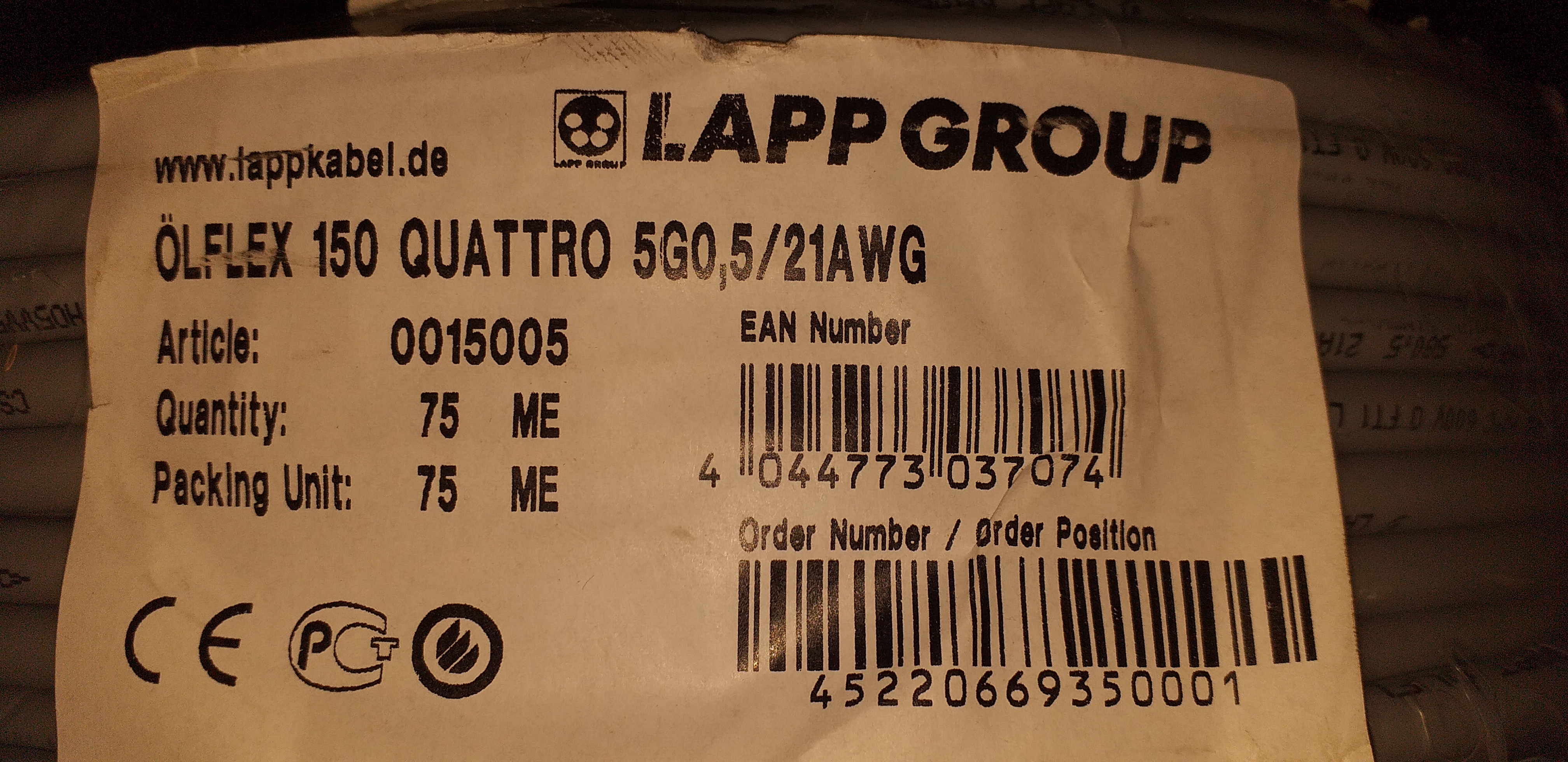 , ölflex 5G1 - 30m - 7e , ölflex 4G1 - 30m - 7e , ölflex 2x0,5 - 75m - 10e , ölflex 5G0,5 - 75m - 15e
